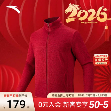 安踏马年红色外套男款2026新款过年红本命年立领运动上衣保暖夹克