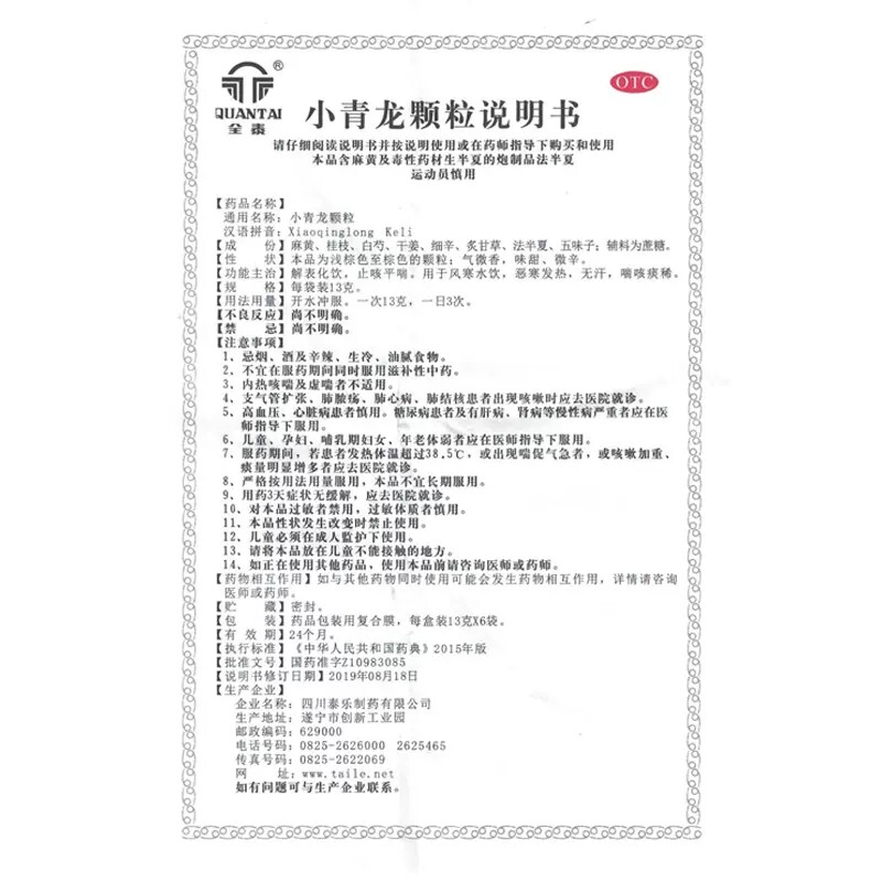 全泰小青龙颗粒13g*6袋/盒风寒止咳平喘恶寒发热发烧无汗喘咳痰稀