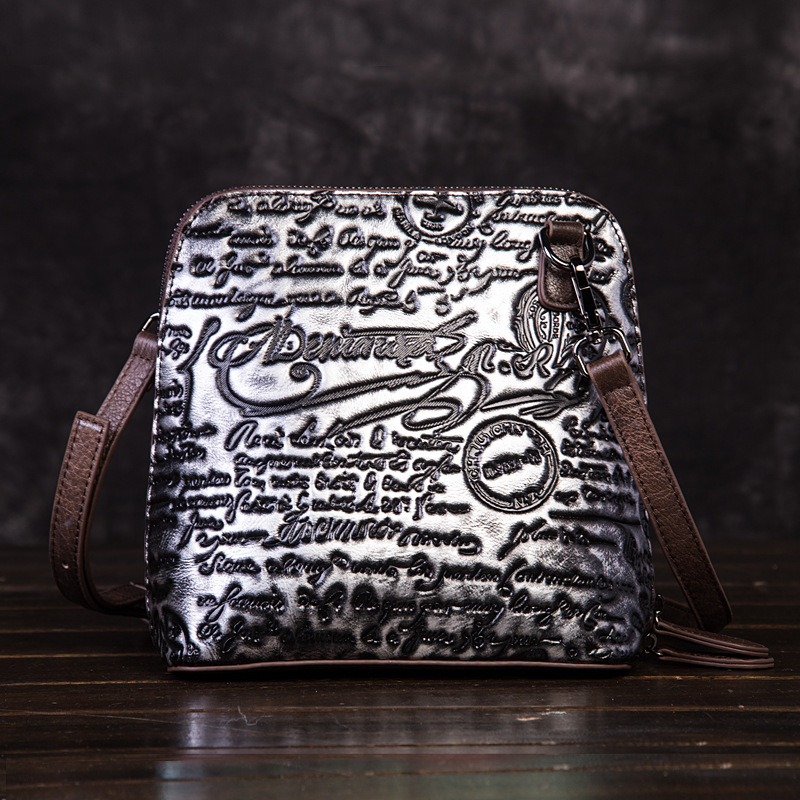 复古真皮女包小方包头层牛皮单肩斜挎包休闲字母压花擦色时尚背包