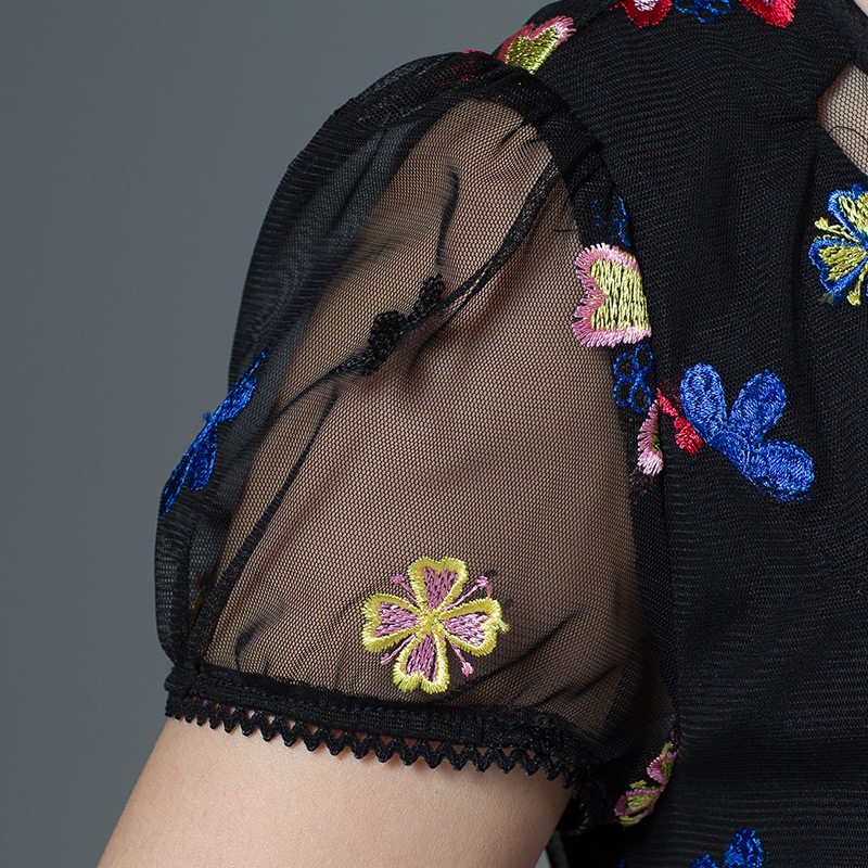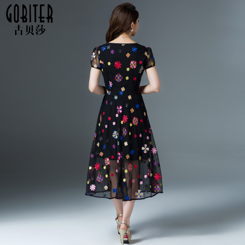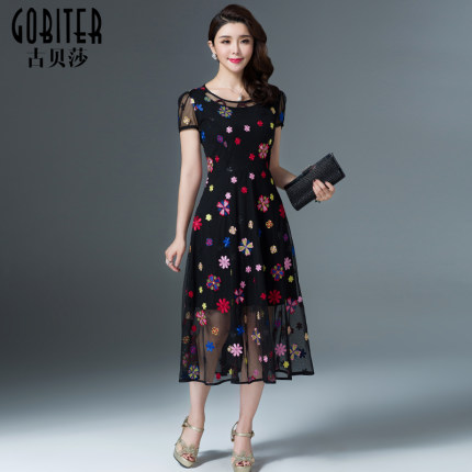 连衣裙夏季网纱刺绣大码古贝莎