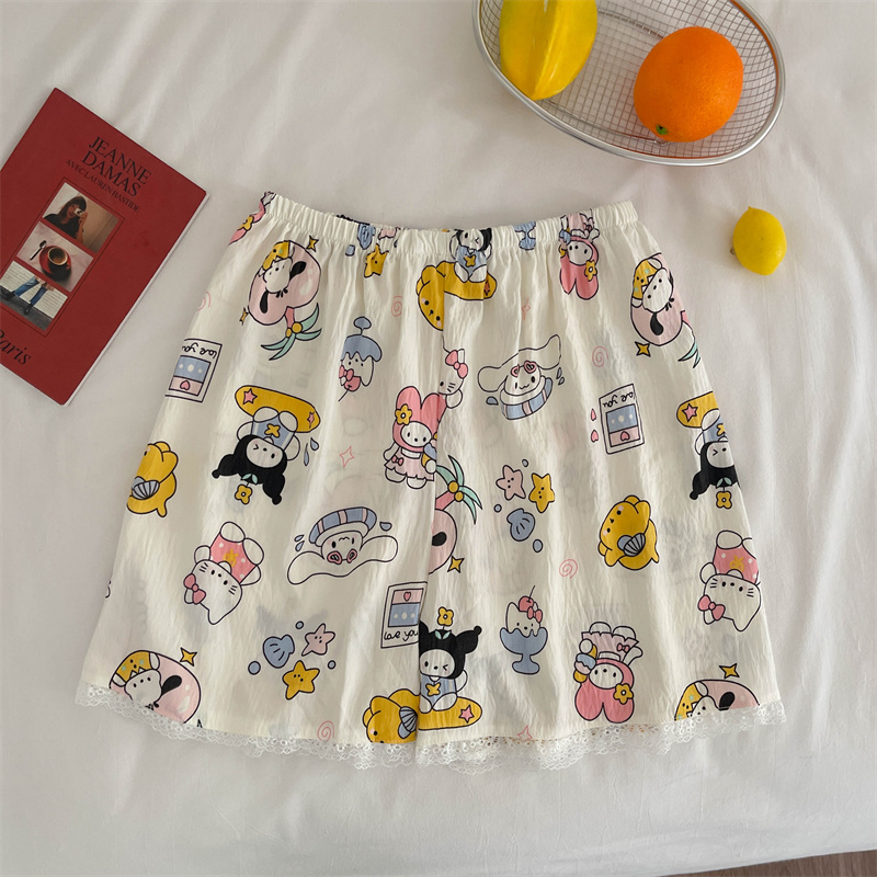 日系卡通2025新款夏季居家睡裤女款短裤高腰休闲百搭可爱遛弯裤子