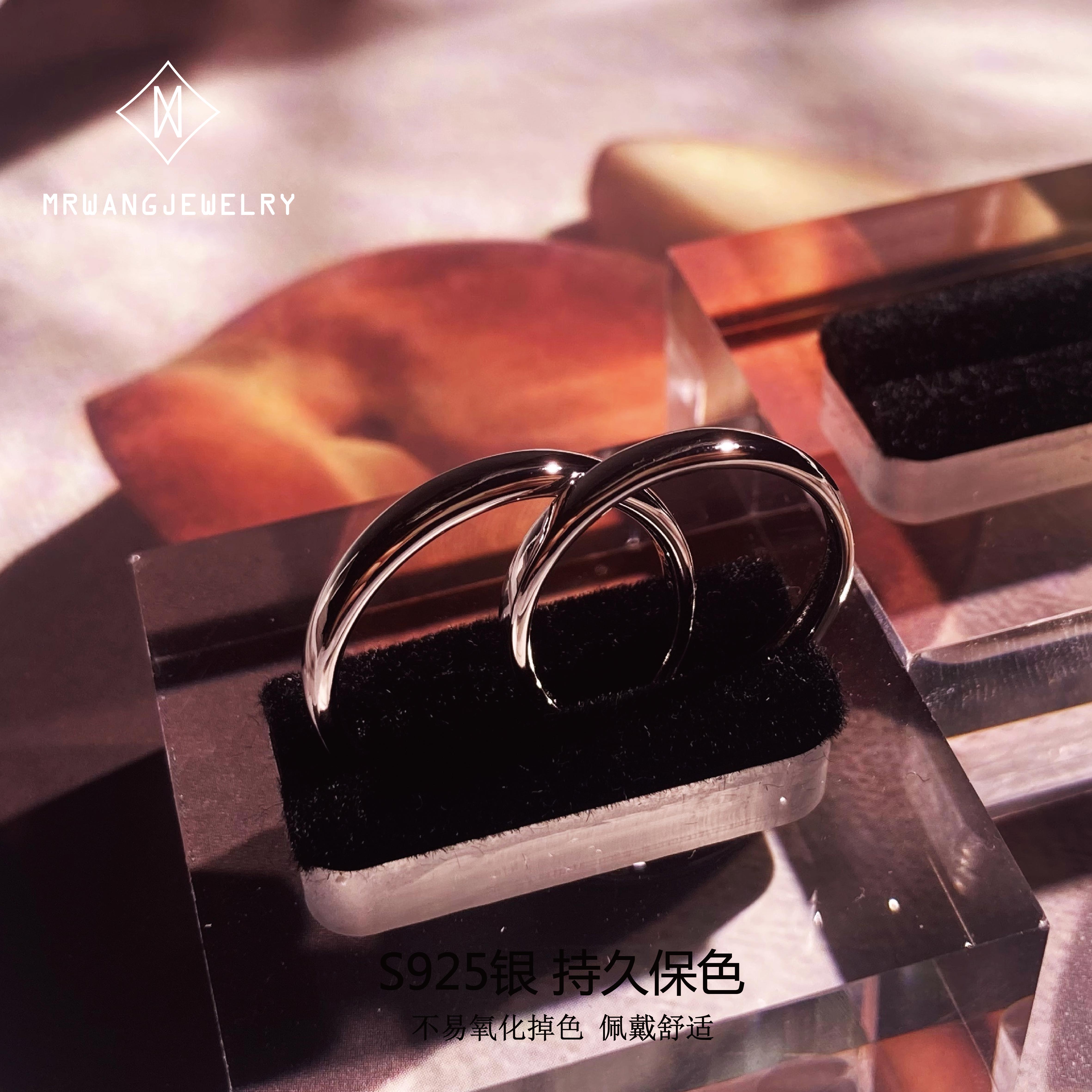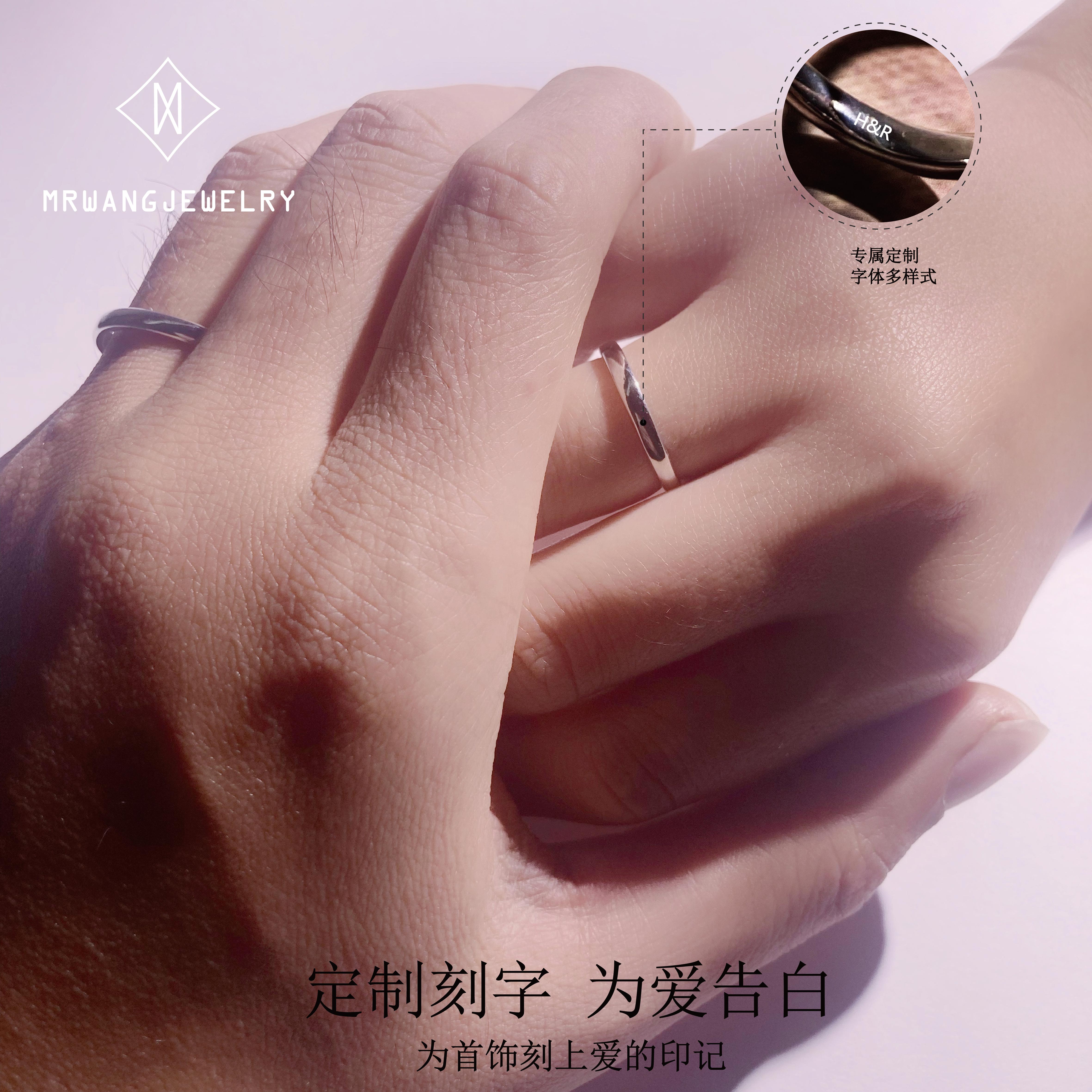 原创设计925纯银情侣对戒一对字母刻字戒指男女素戒情人节礼物品