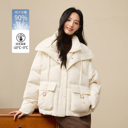茵曼2025冬季新款长袖短款鸭鸭羽绒服女上衣宽松面包服外套小个子