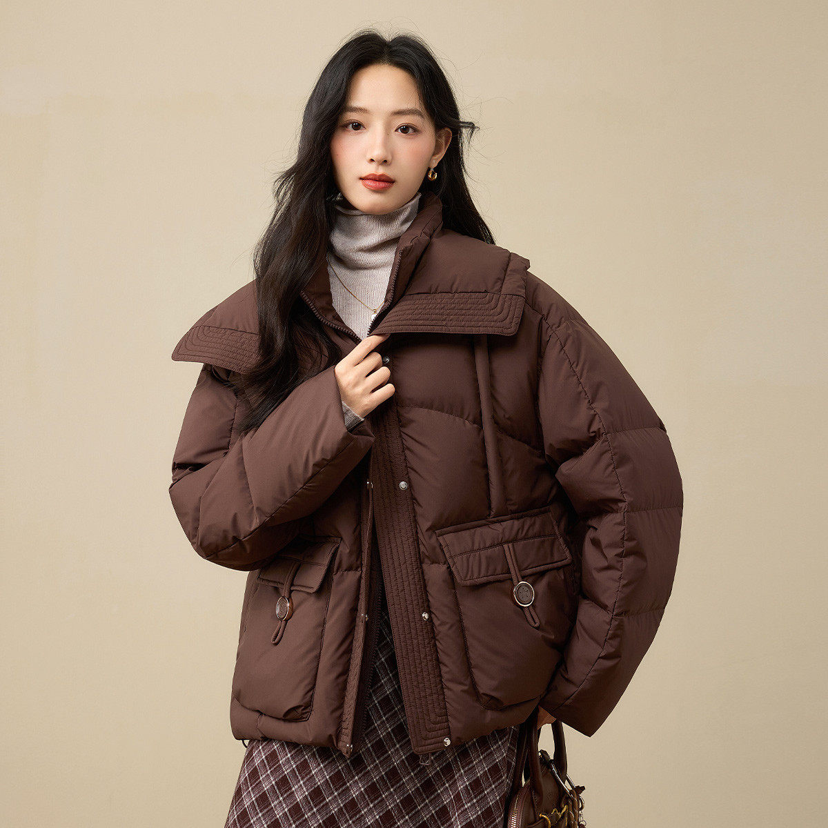 茵曼2025冬季新款长袖短鸭