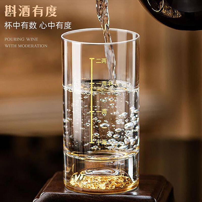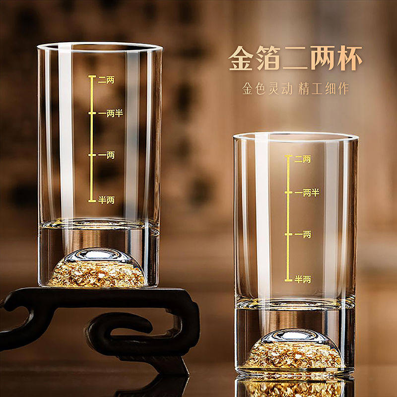 一两白酒杯子轻奢高档刻度酒杯金箔2两白酒杯酒具套装小酒盅二两
