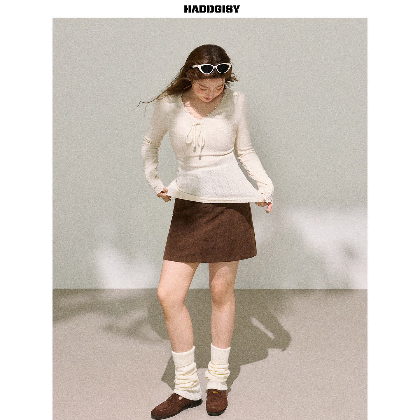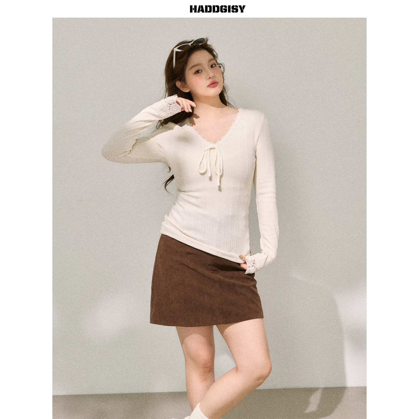 曾小咸大码女装 胖mm长袖v领蕾丝内搭可外穿上衣遮肉显瘦2025新款