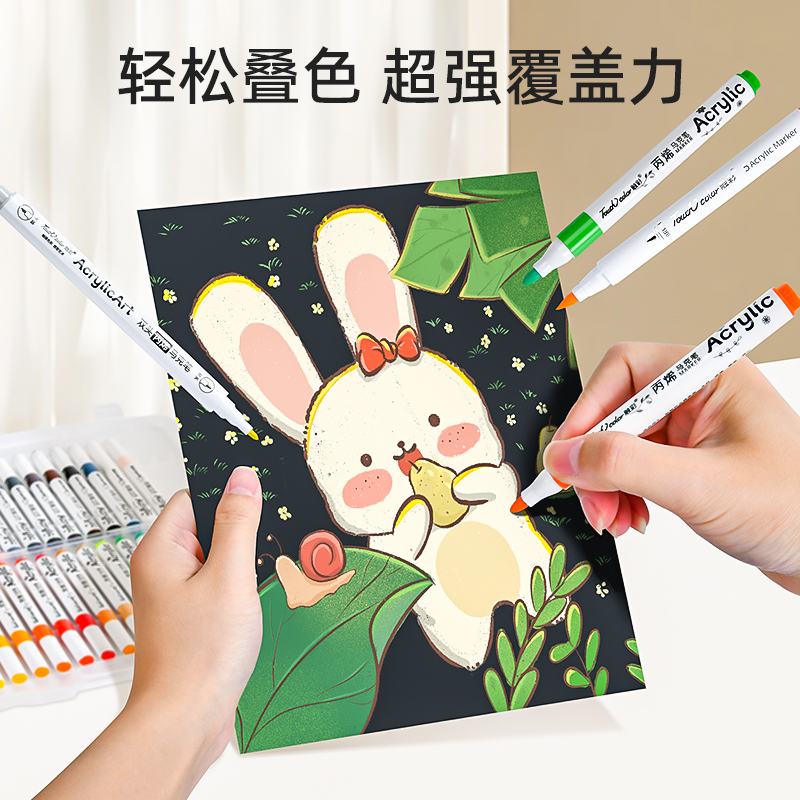 touch color 丙烯马克笔小学生专用不透色可叠色软头丙稀笔儿童水彩笔幼儿园美术涂鸦可水洗无毒双头笔芯画笔