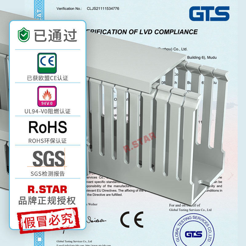 R.STAR整箱工业阻燃线槽加厚PVC配线行线控制柜电箱专用u型线缆槽