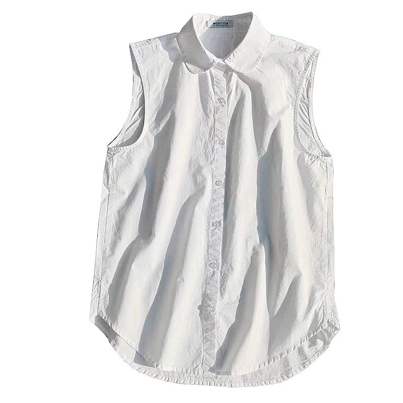 好品质全棉无袖简精致衬衣打底叠穿衬衫女白色背心马甲优雅内搭女
