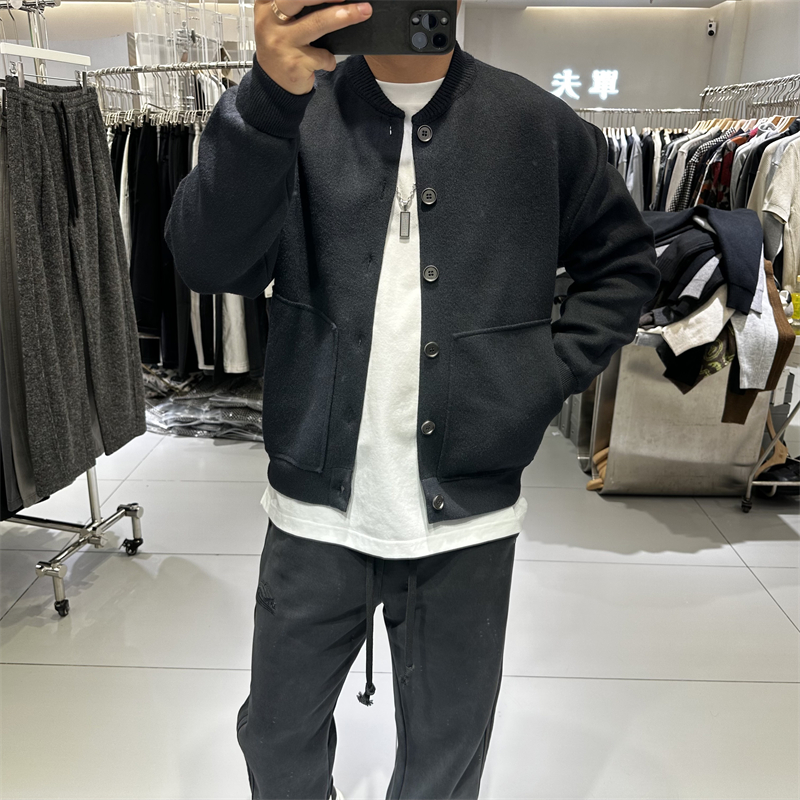 2025秋冬新款男士棒球领针织开衫外套修身简约保暖轻奢毛衣时尚