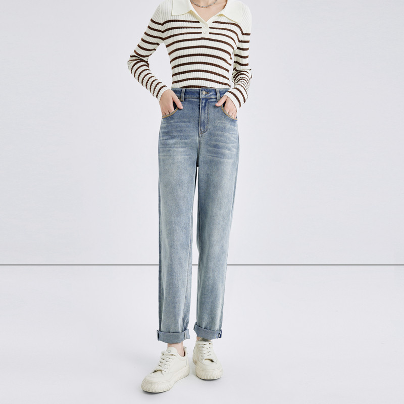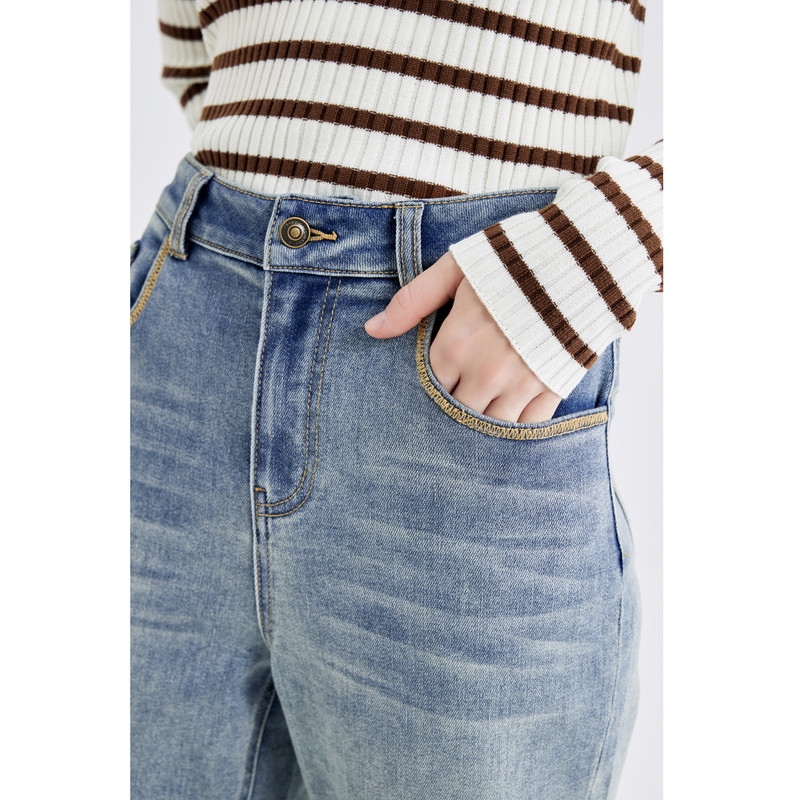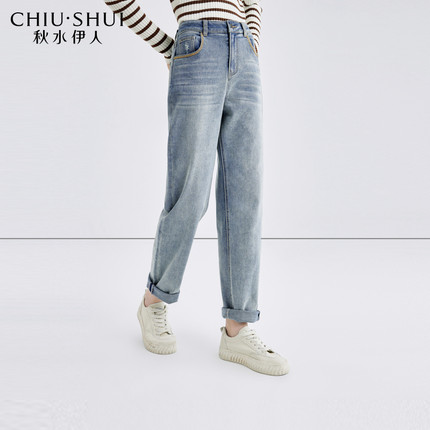 秋水伊人奥莱断码清仓复古时髦中高腰牛仔裤秋季女装显瘦百搭裤子