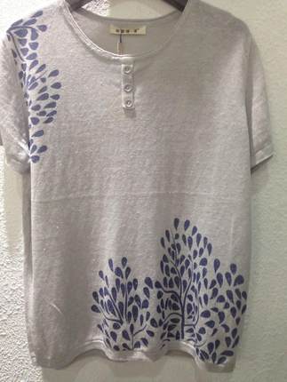 佳菲特·满2018夏季新款女装亚麻文艺印花针织短袖上衣t恤外套女