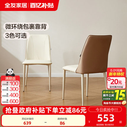 全友家居现代简约科技皮艺软包餐椅客厅靠背椅子家用凳子2025新款