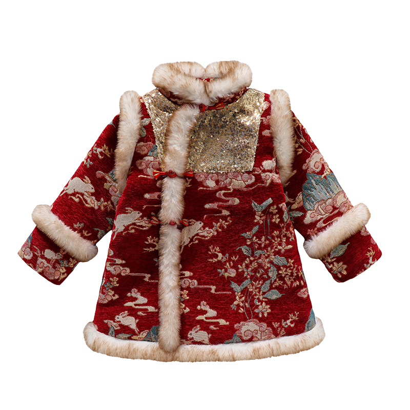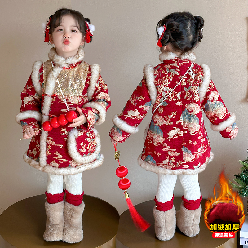 汉服女童连衣裙冬季加绒女孩公主裙中国风儿童过年喜庆宝宝拜年服
