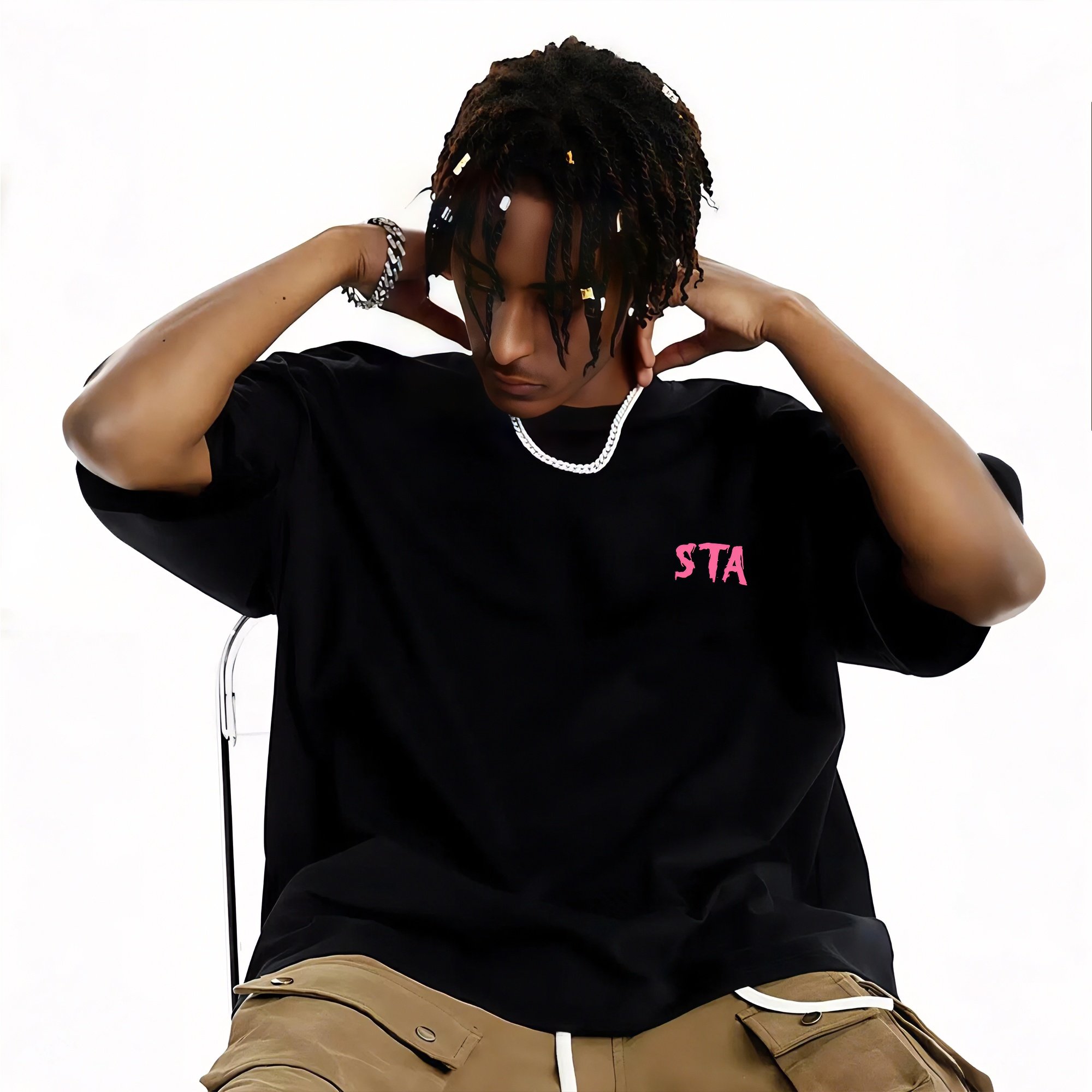 STA旗舰店美式字母印花短袖男女夏季潮牌重磅纯棉宽松休闲情侣T恤