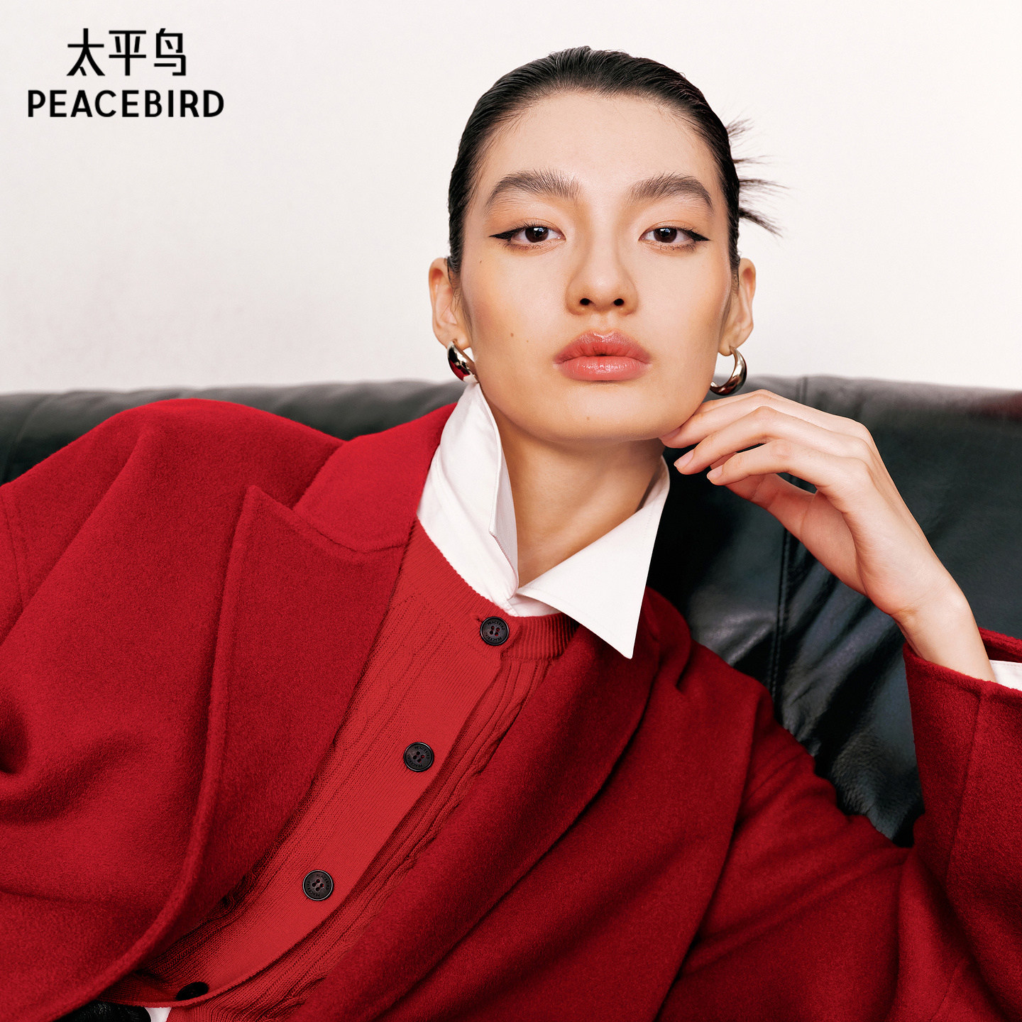 太平鸟甄毛系列经典浴袍式大衣假日仪式感战袍全羊毛大衣女红色