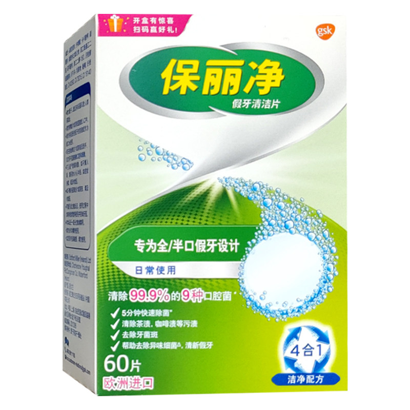 保丽净假牙牙套清洁片60片正畸透明保持器泡腾片减菌泡腾片清口气