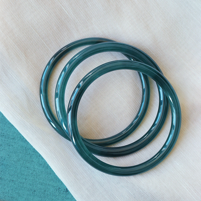精品全冰料天然A货翡翠危料蓝水细条手镯 女款正品叮当翡翠手镯