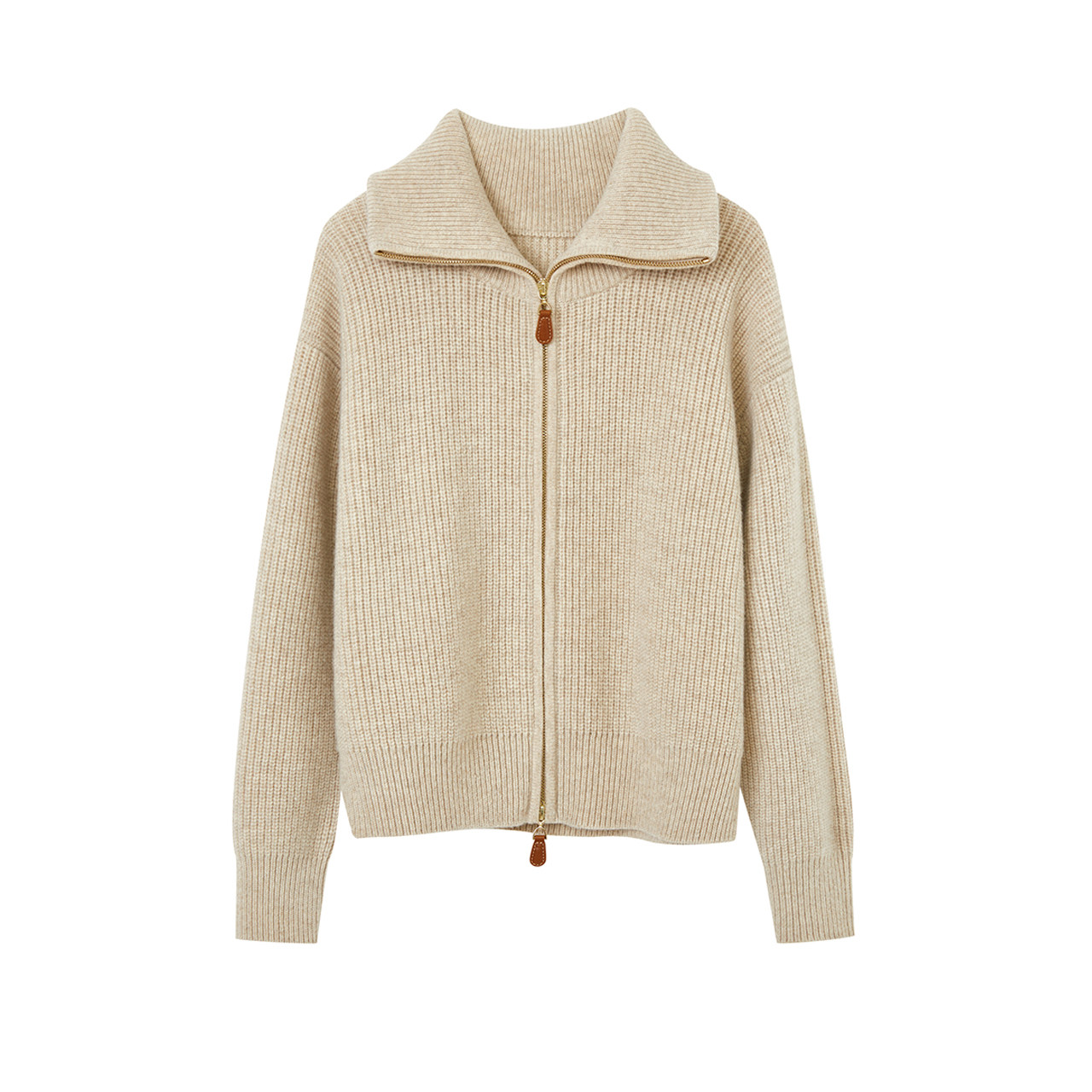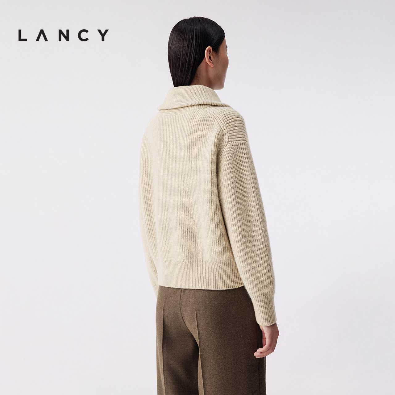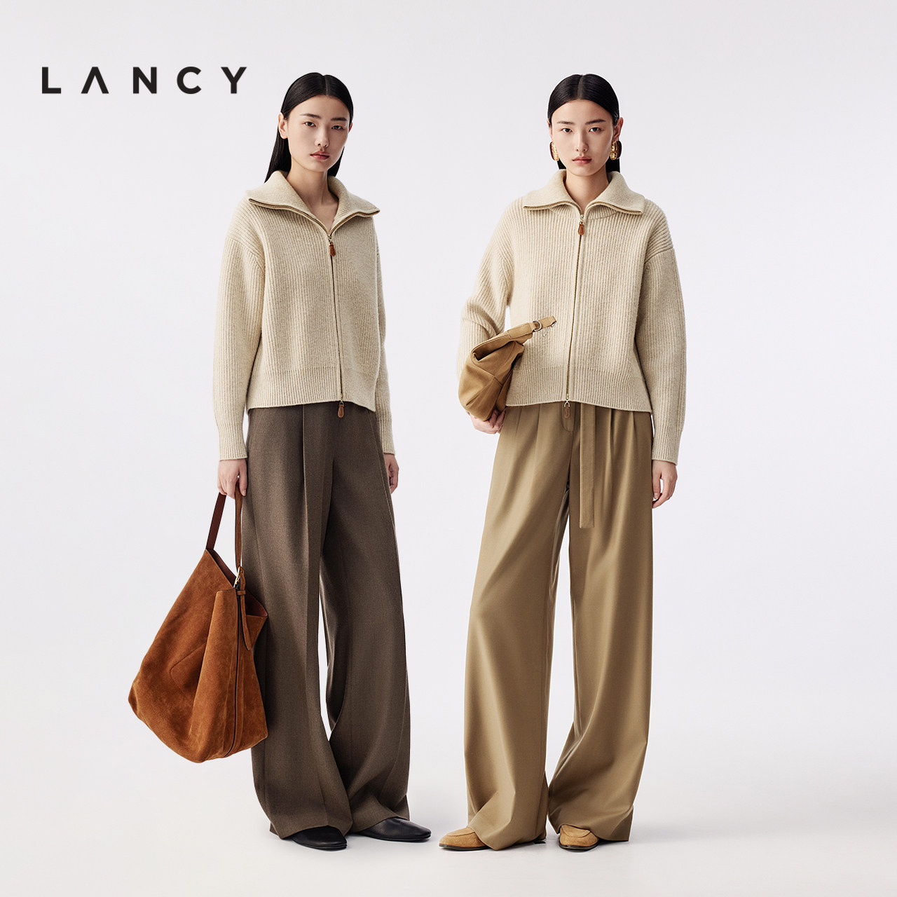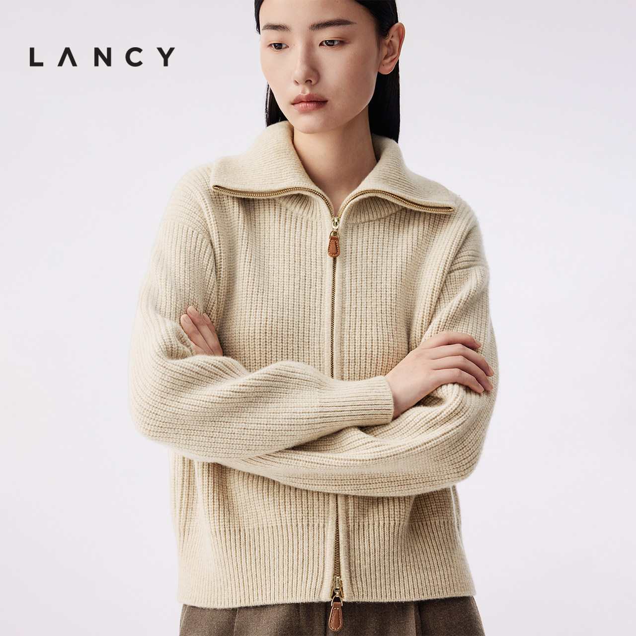【宋佳同款】LANCY/朗姿25冬新款纯羊毛大翻领针织衫双拉链短上衣