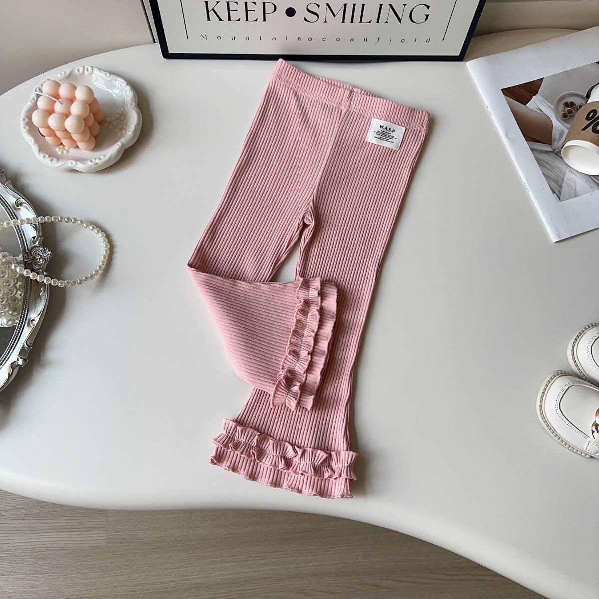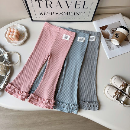 女童打底裤2025春秋新款儿童洋气百搭弹力裤女宝宝纯色花边长裤潮