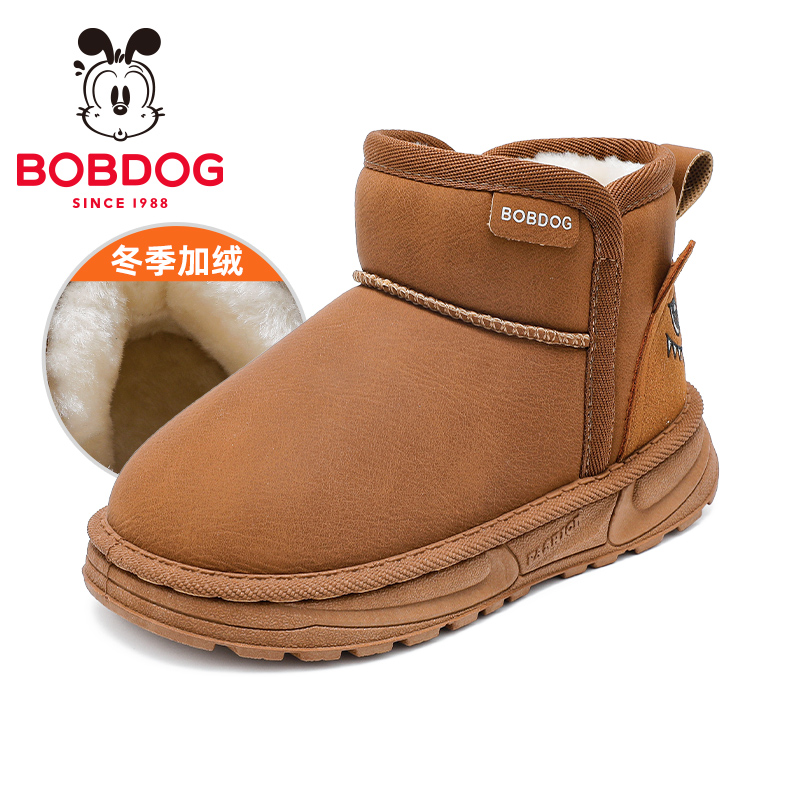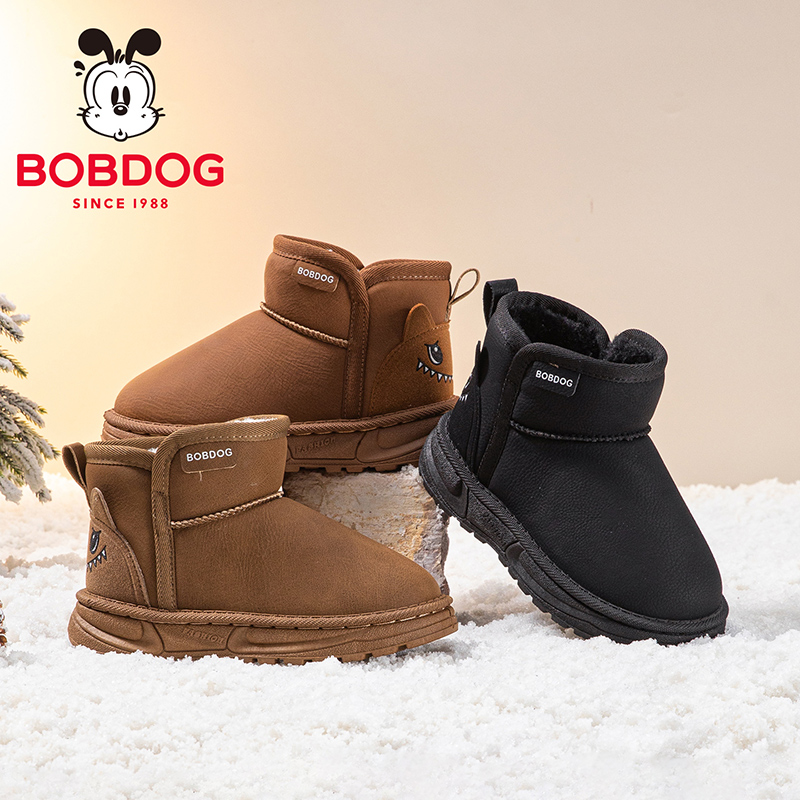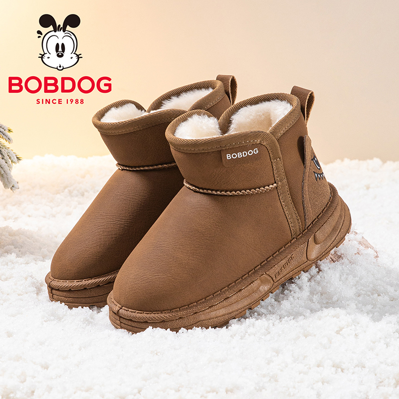 巴布豆童鞋男宝加绒加厚雪地靴2025新款男大童雪地棉冬季儿童靴子