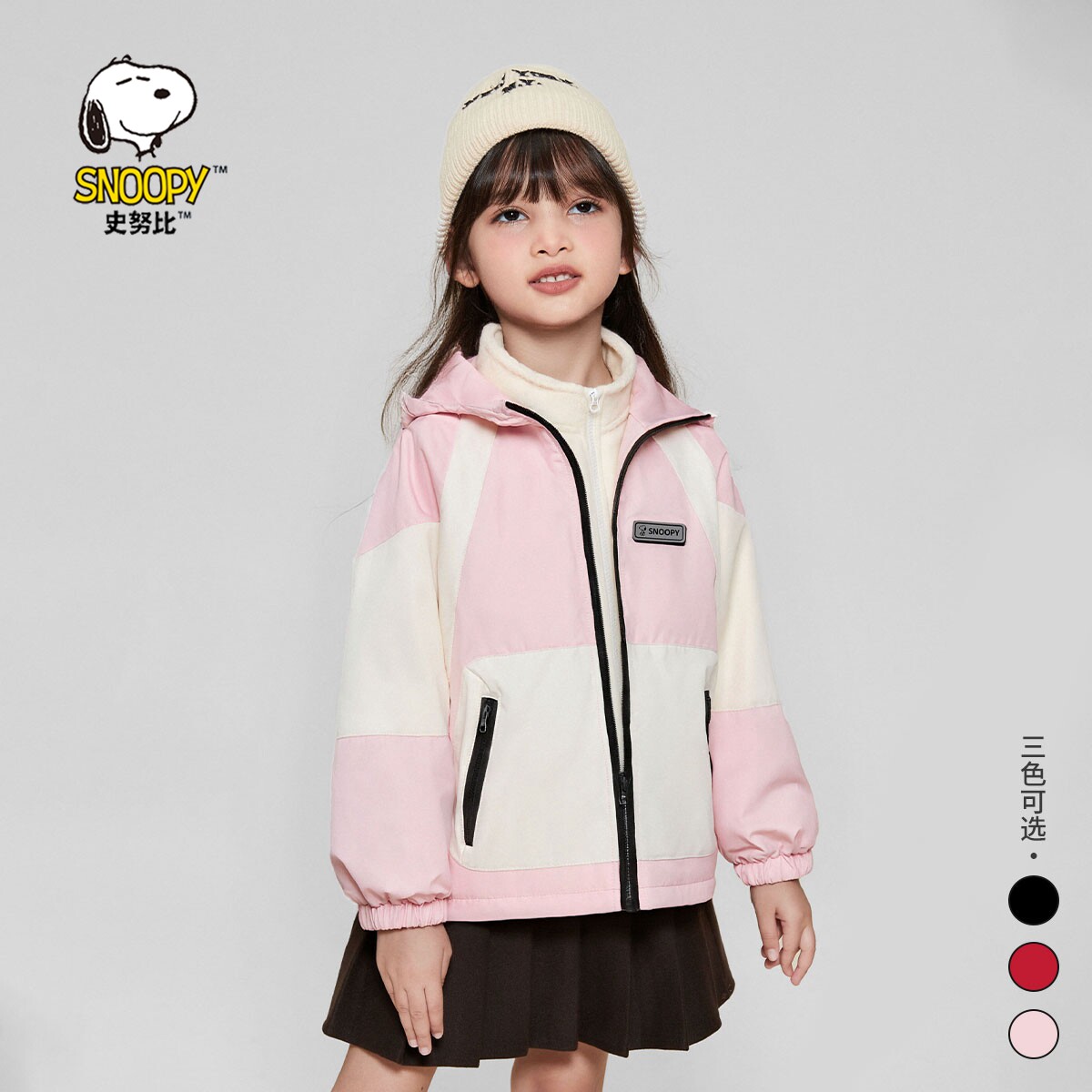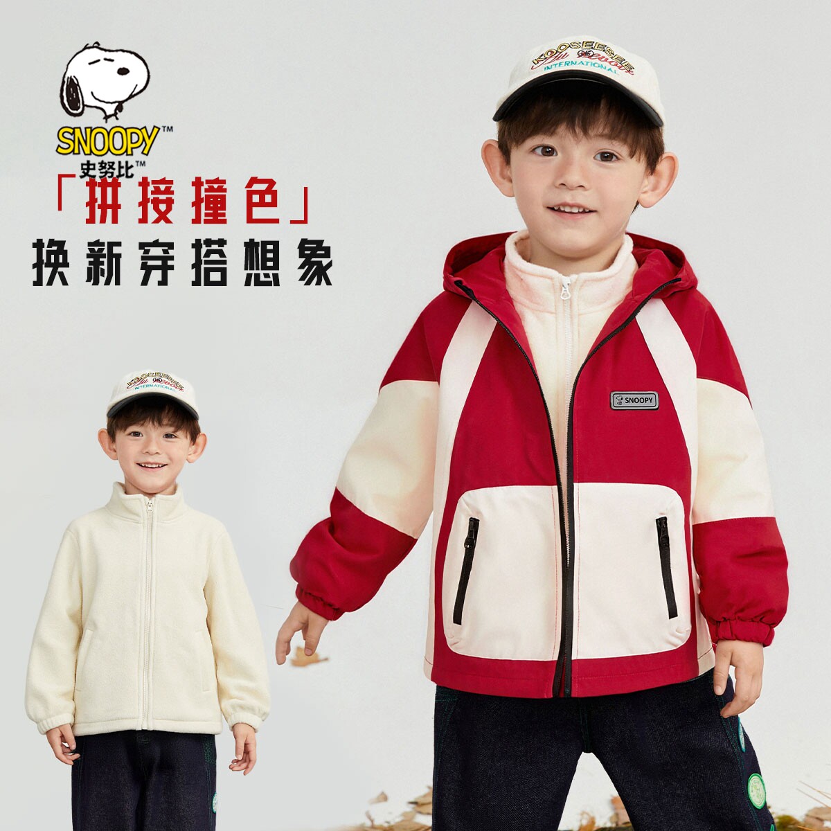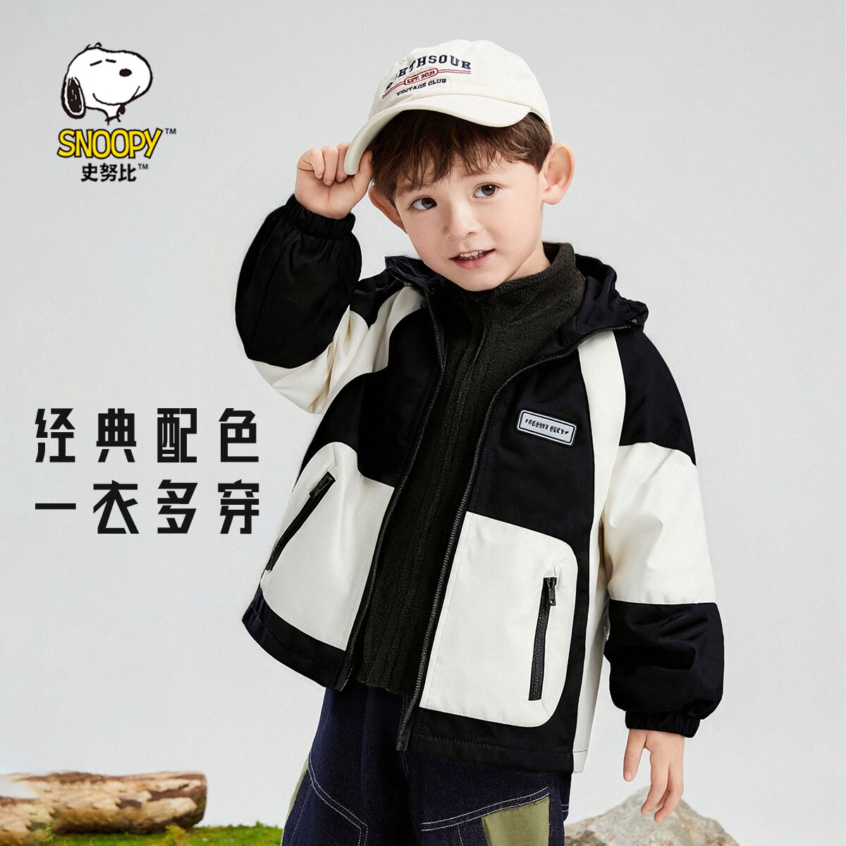 史努比儿童连帽外套男女童户外冲锋衣三合一春秋款2025新款秋冬装