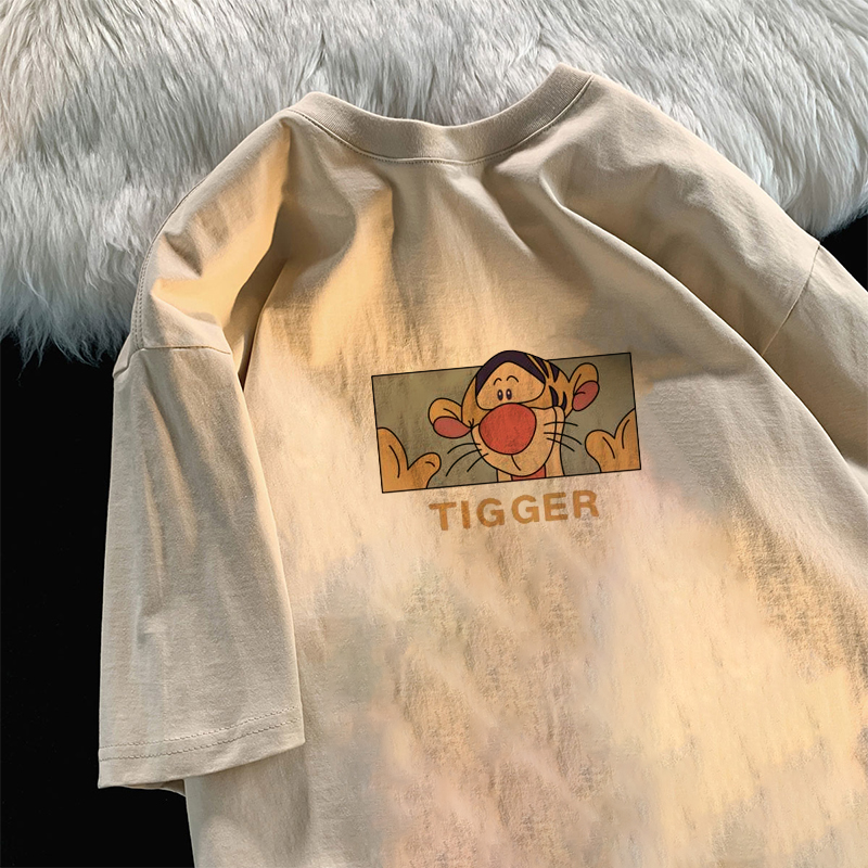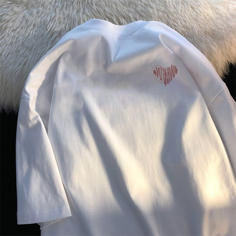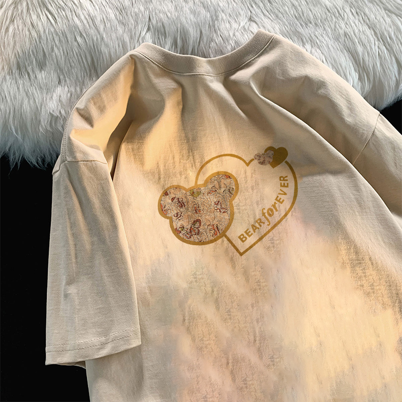 奶黄色纯棉短袖t恤女夏季美式复古宽松设计感小众大码女装上衣服