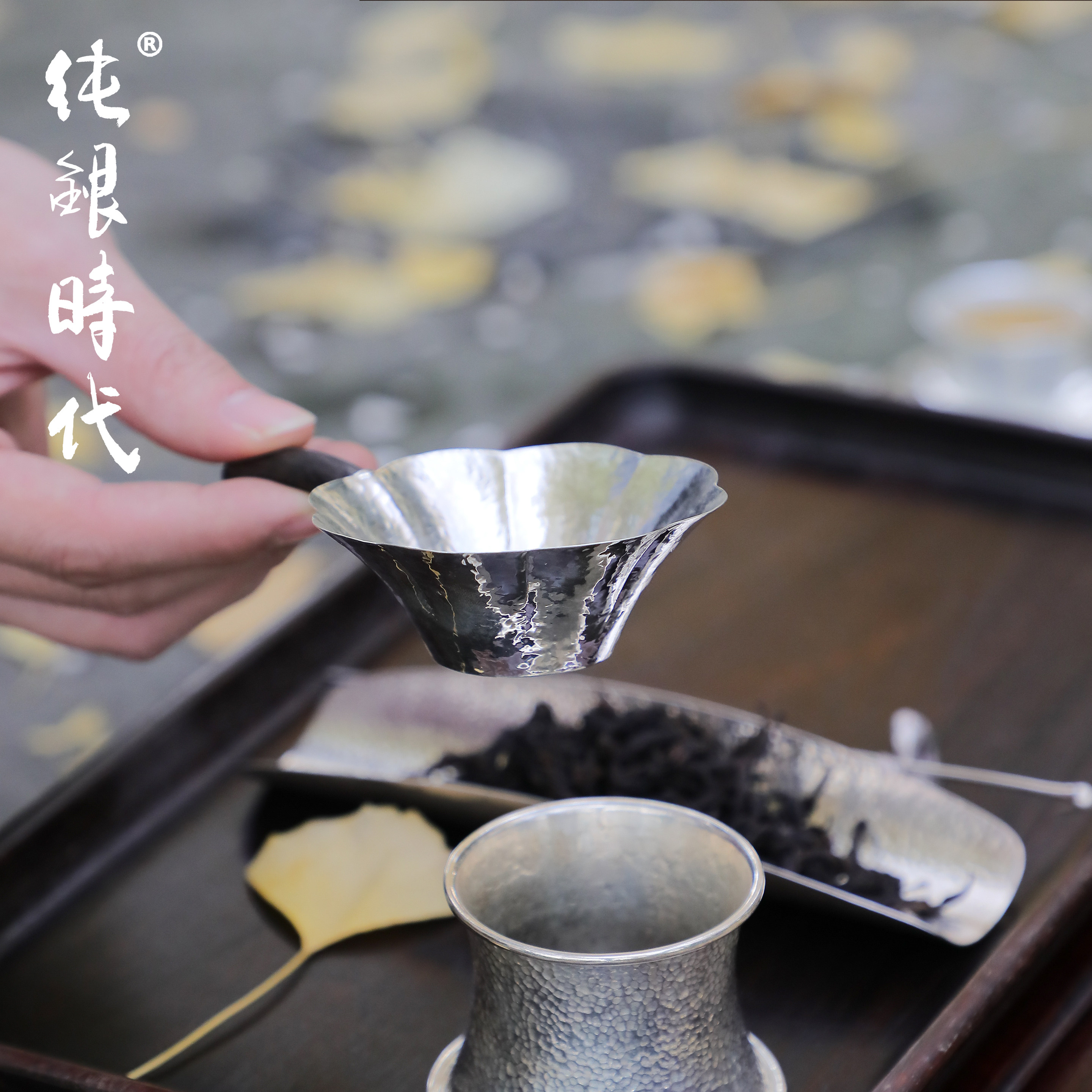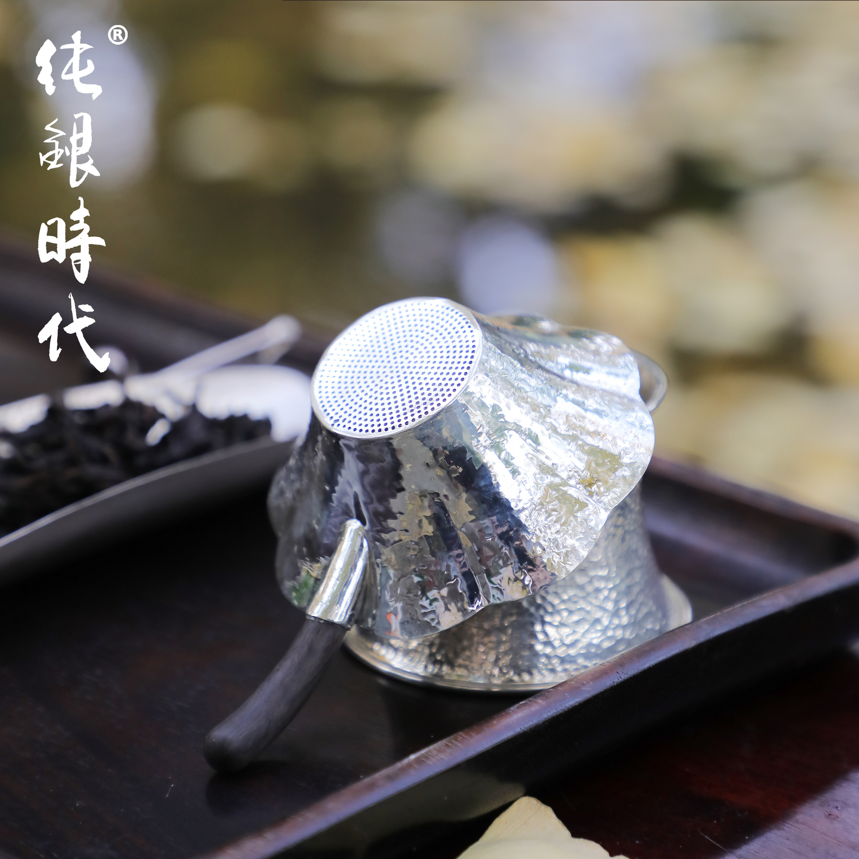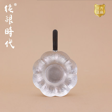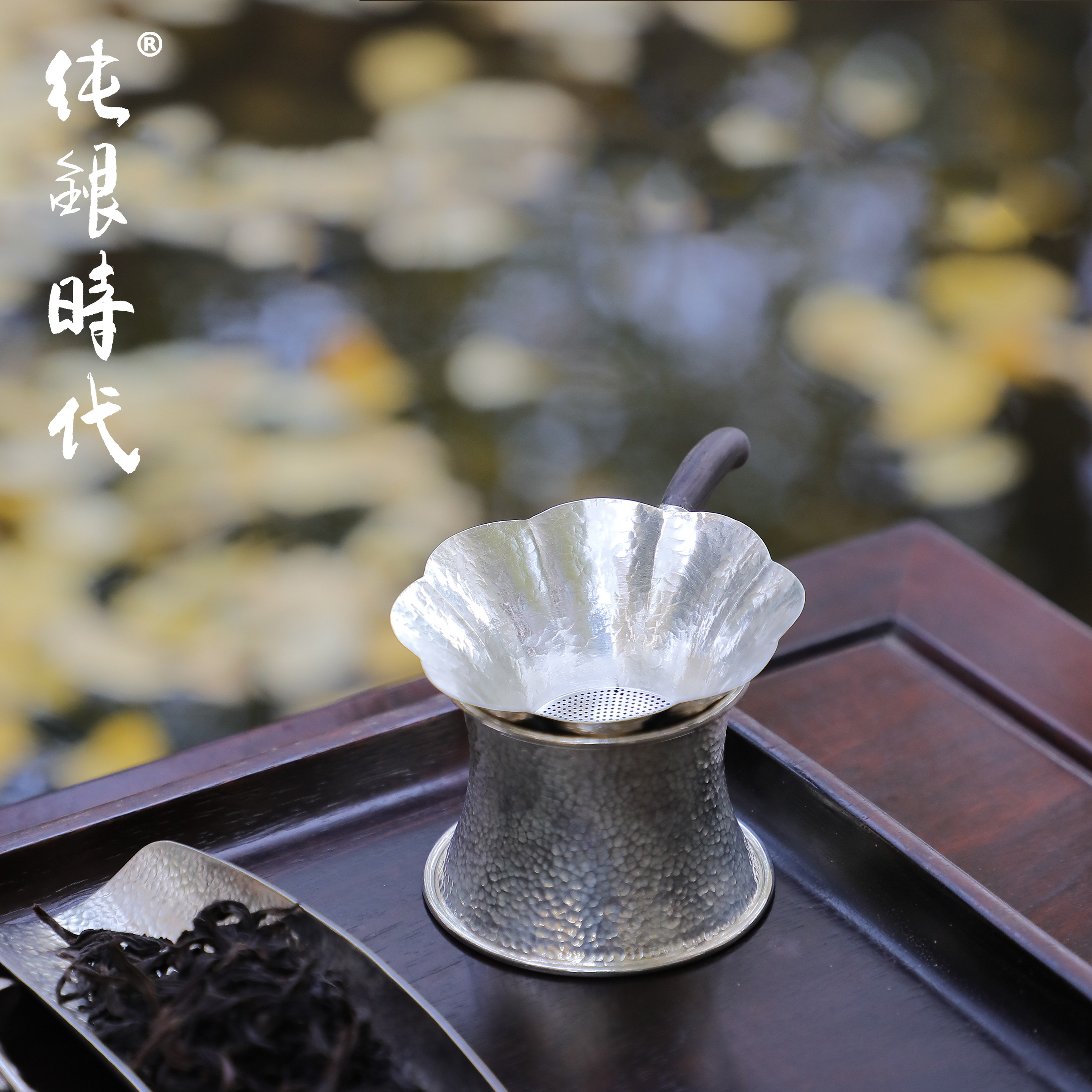纯银时代 花瓣茶滤纯银999手工茶叶过滤茶具防烫檀木把手家用茶漏