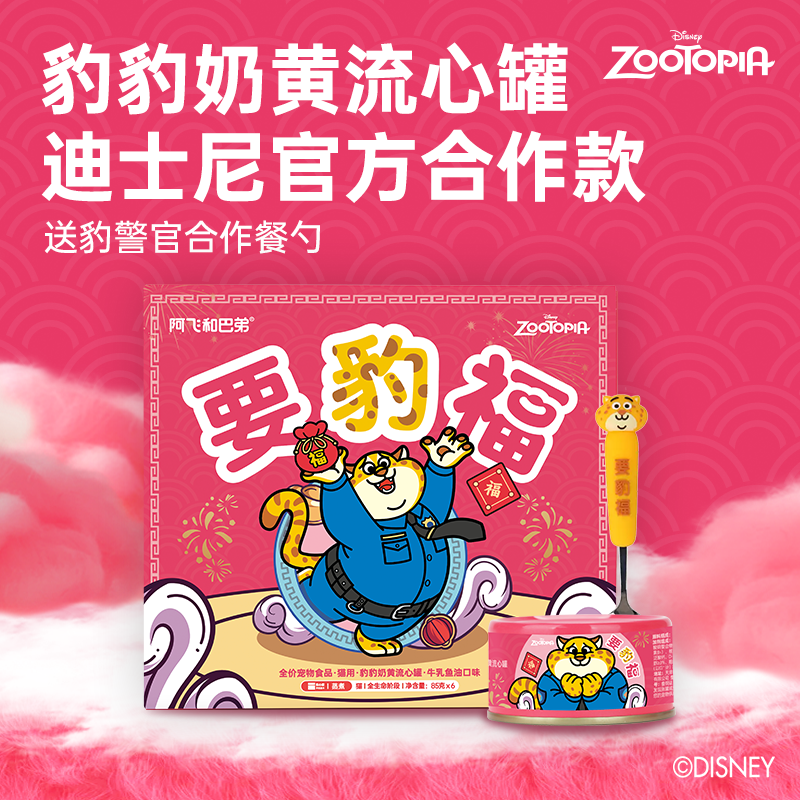 【迪士尼合作款】阿飞和巴弟豹警官罐头牛乳鱼油味主食湿粮流心罐