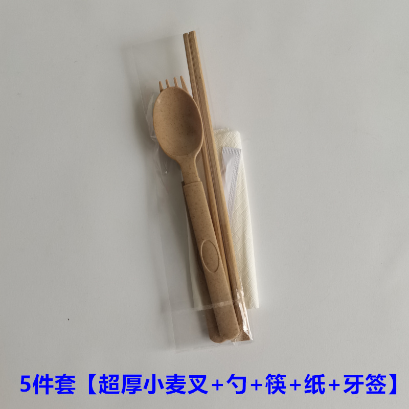 一次性餐具塑料叉勺带纸巾独立装套装组合水果沙拉叉子勺子竹筷子