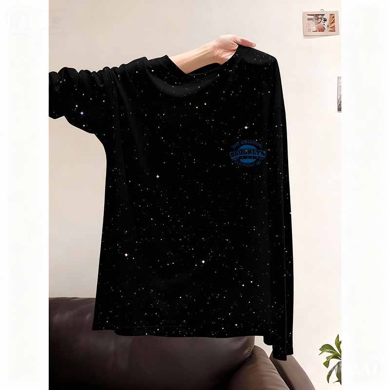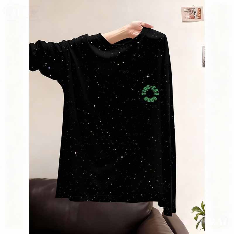 纯棉新款满天星长袖T恤女生上衣中长款宽松显瘦外穿通勤高级感ins