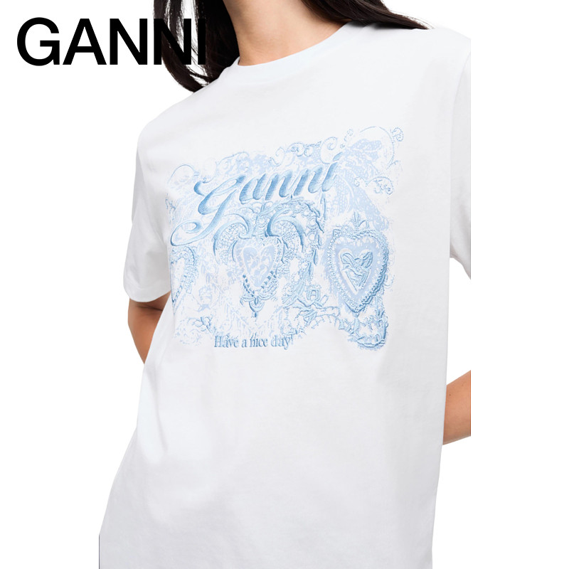 【甄选折扣】GANNI女装 亮蕾丝印花宽松短袖T恤上衣 T4158151