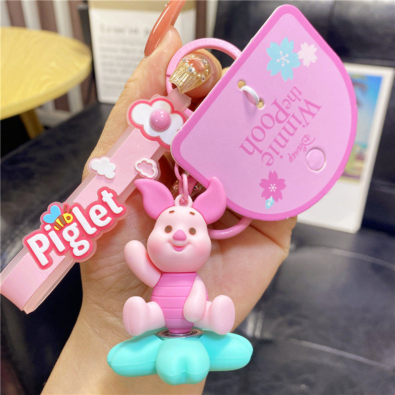 正版迪士尼卡通可爱维尼熊小猪樱花钥匙扣情侣旋转钥匙链背包挂件