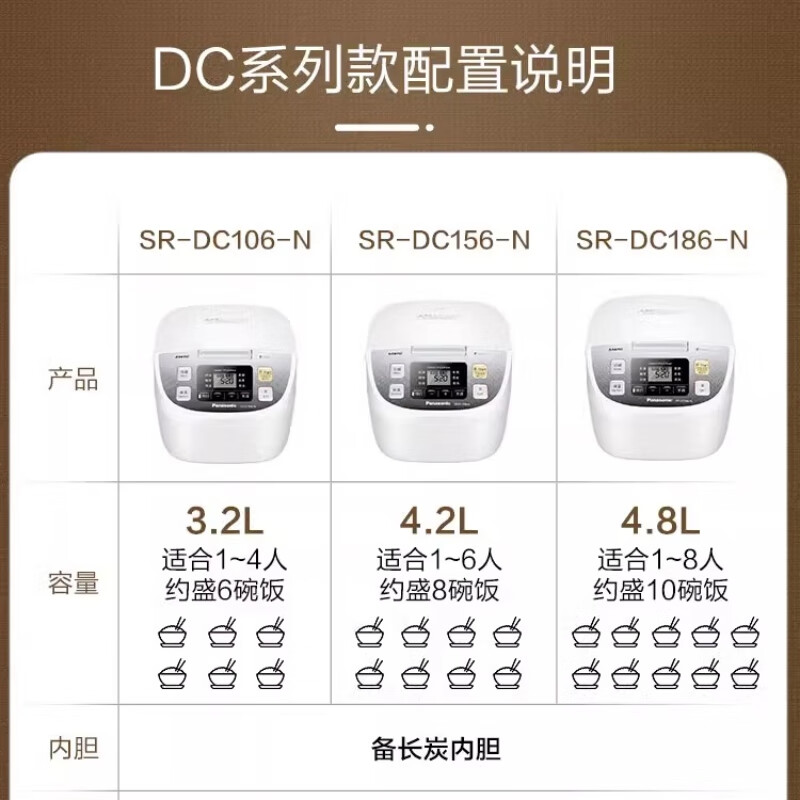 松下电饭煲3.2L家用智能24小时预约多功能蒸煮保温电饭锅DC106