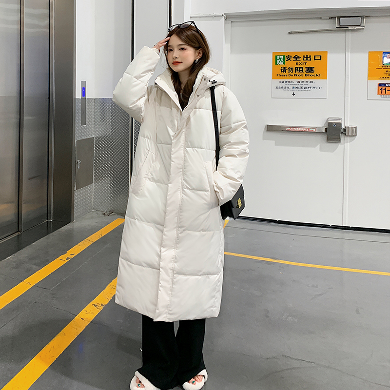米白色羽绒棉服女冬季2025新款韩版宽松小个子加厚中长款过膝棉袄