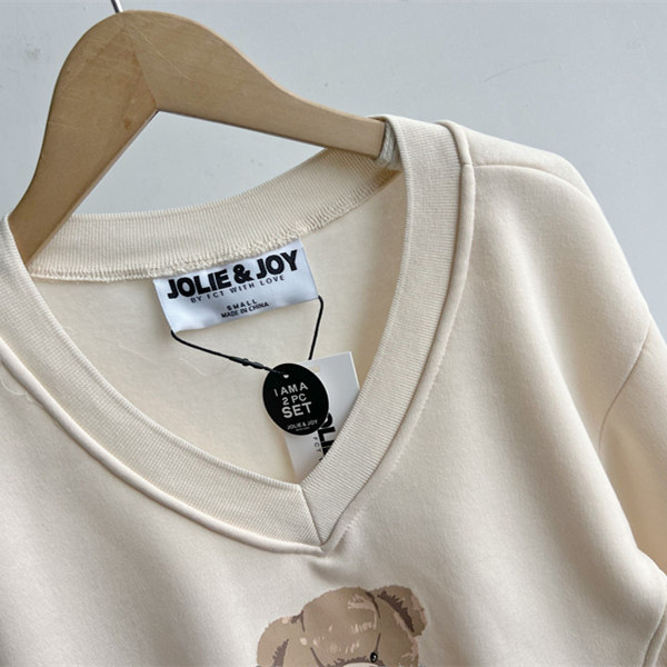 2墙1-8春秋新款女V领套头卡通印花加绒长袖减龄宽松百搭卫衣Z25-4