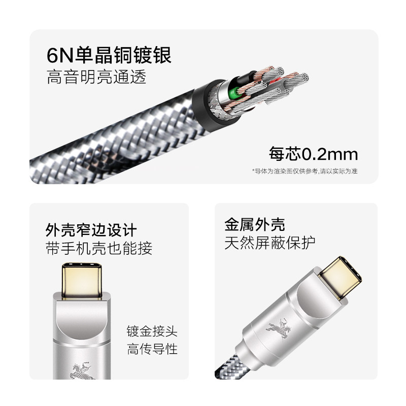 IMPETO罗马战神进口发烧级6N单晶铜镀银typeC转C-C解码DAC音频线