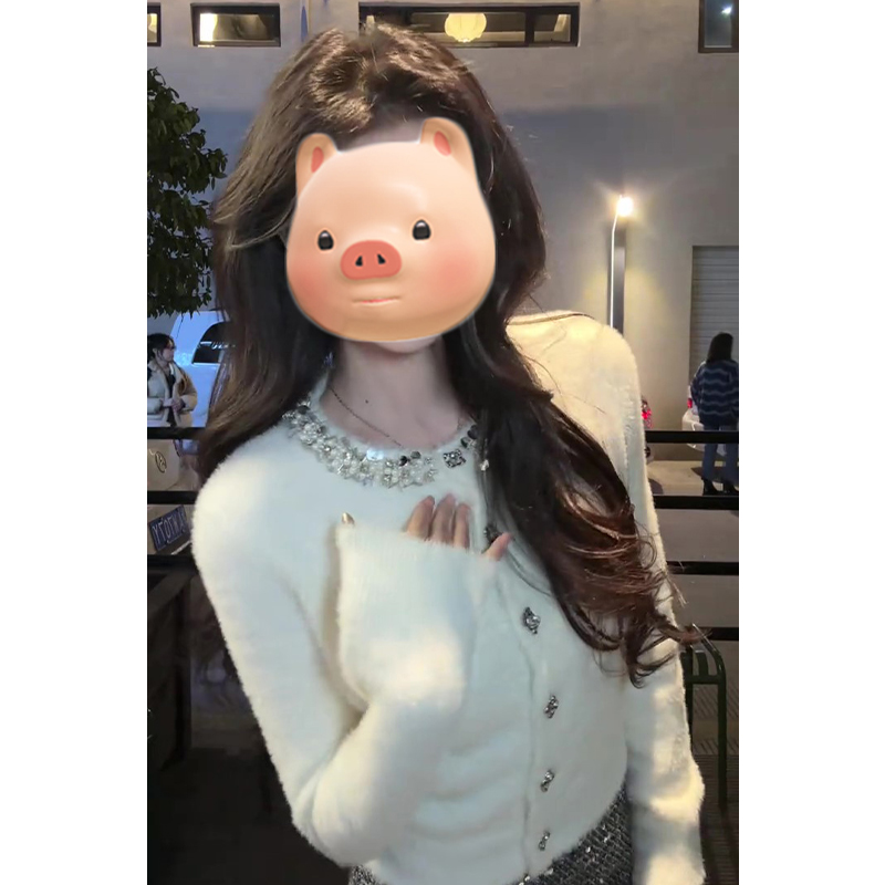 法式小香风白色圆领毛衣开衫女款2025新款秋冬季加厚短款针织外套