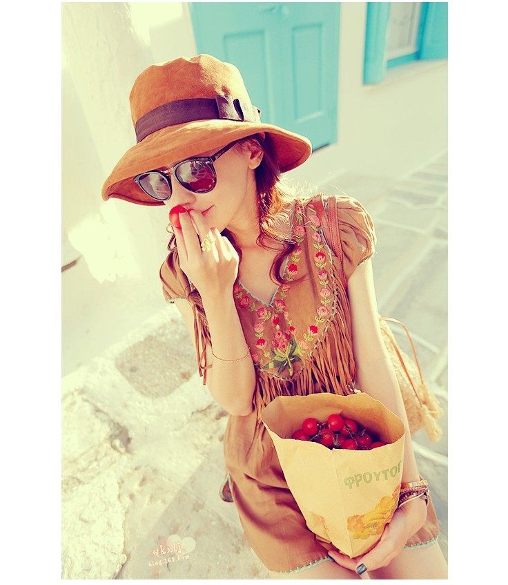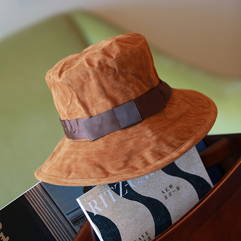 春秋麂皮日系昕薇大帽沿遮阳防晒帽子平顶布帽可折叠调节时尚帽子