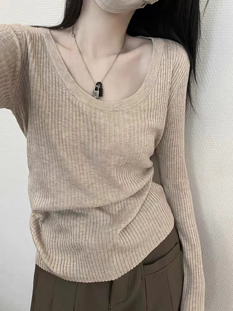 特大码300斤圆领锁骨针织衫女24春秋季内搭毛衣打底衫t恤正肩上衣