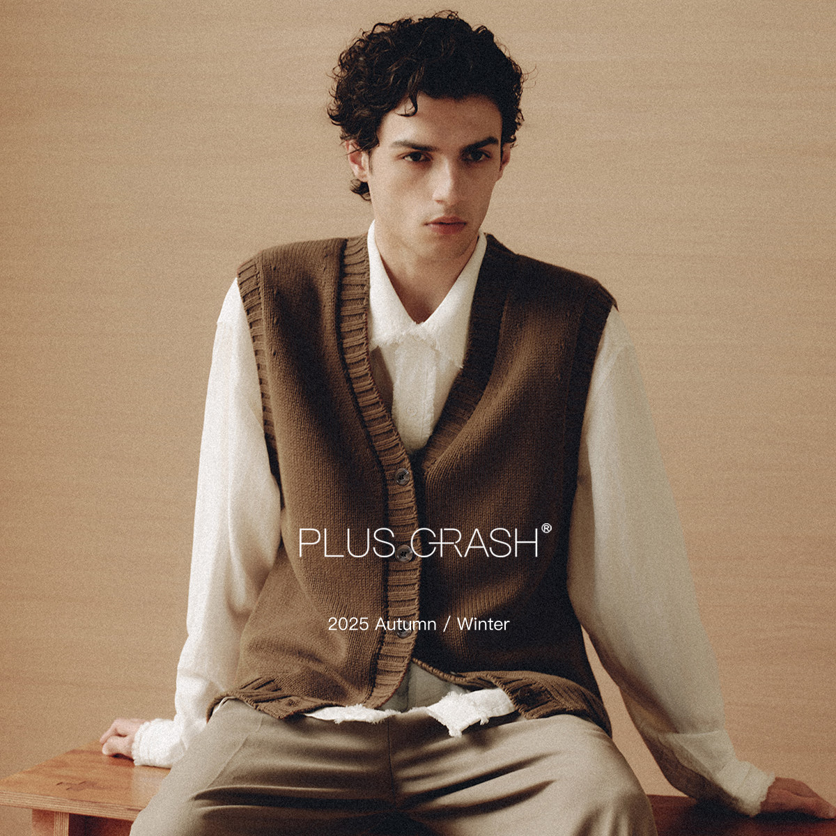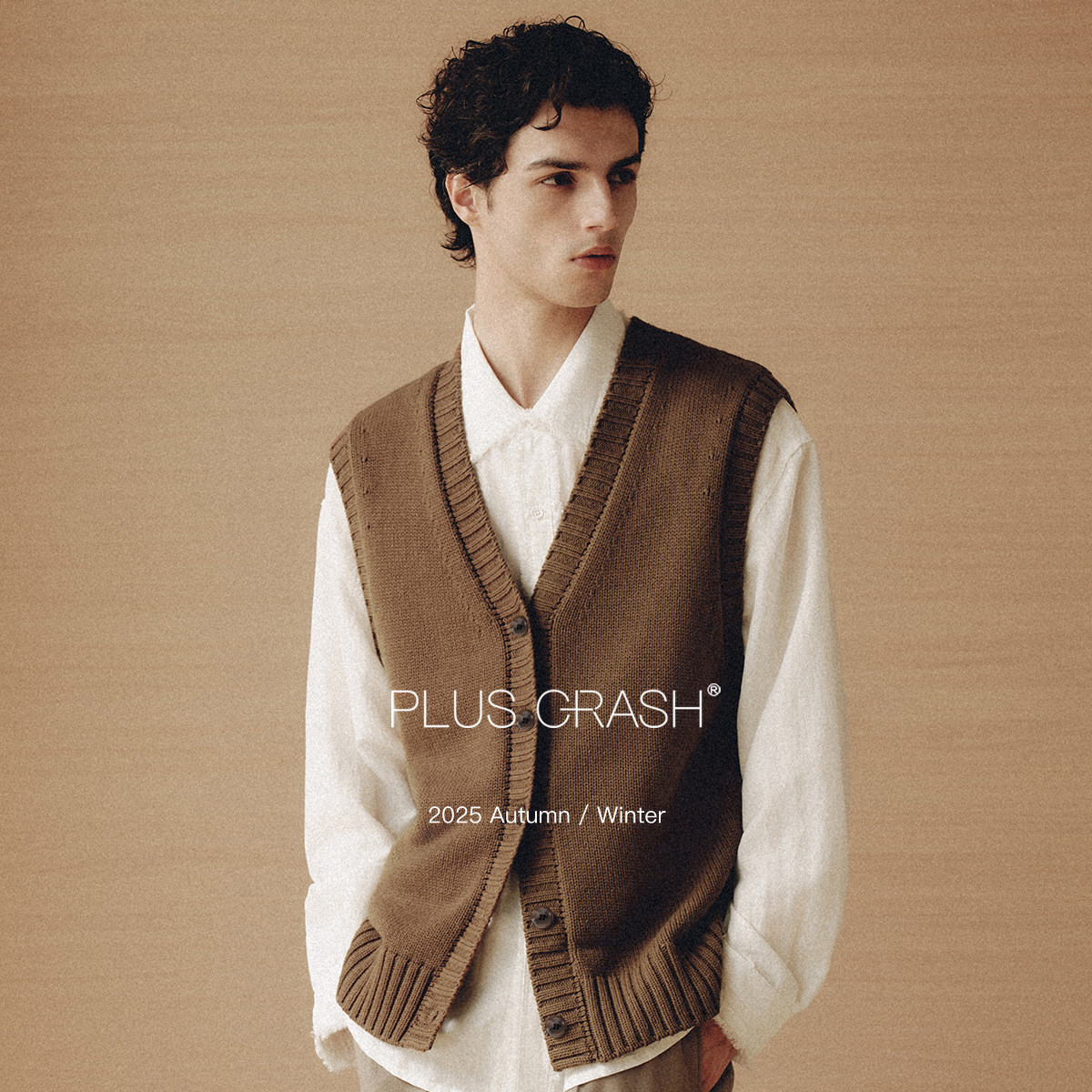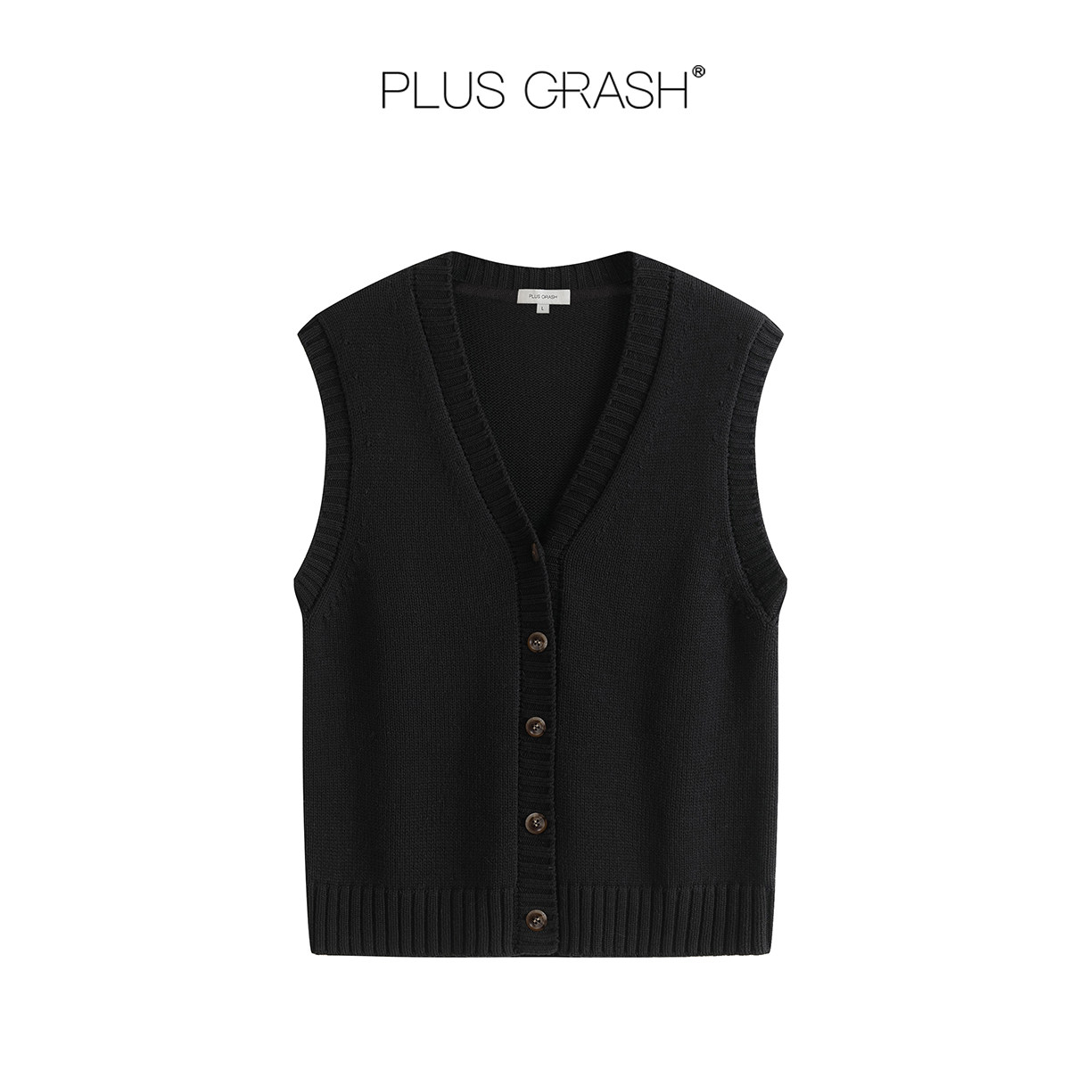 PLUS CRASH冬季老钱风复古针织衫背心无袖开衫外套男女同款