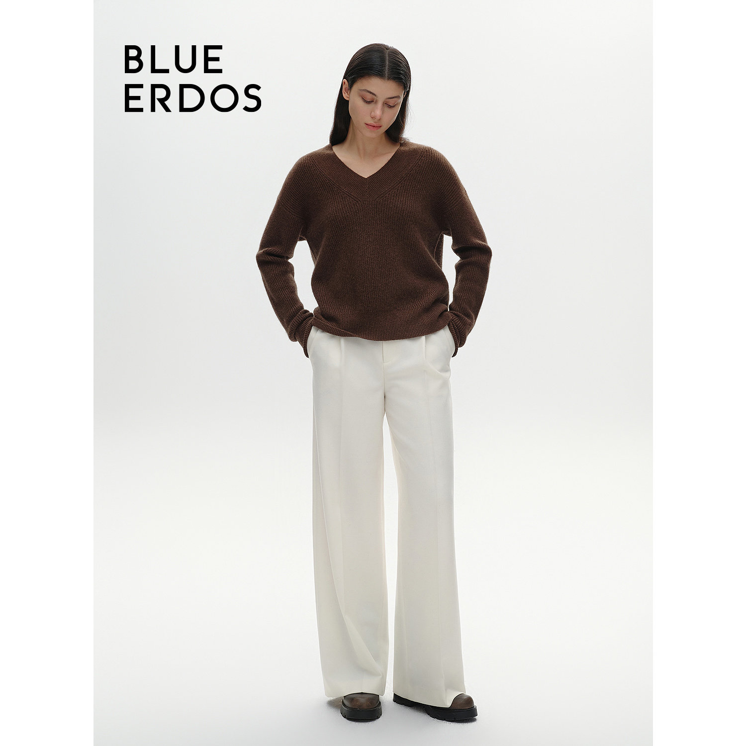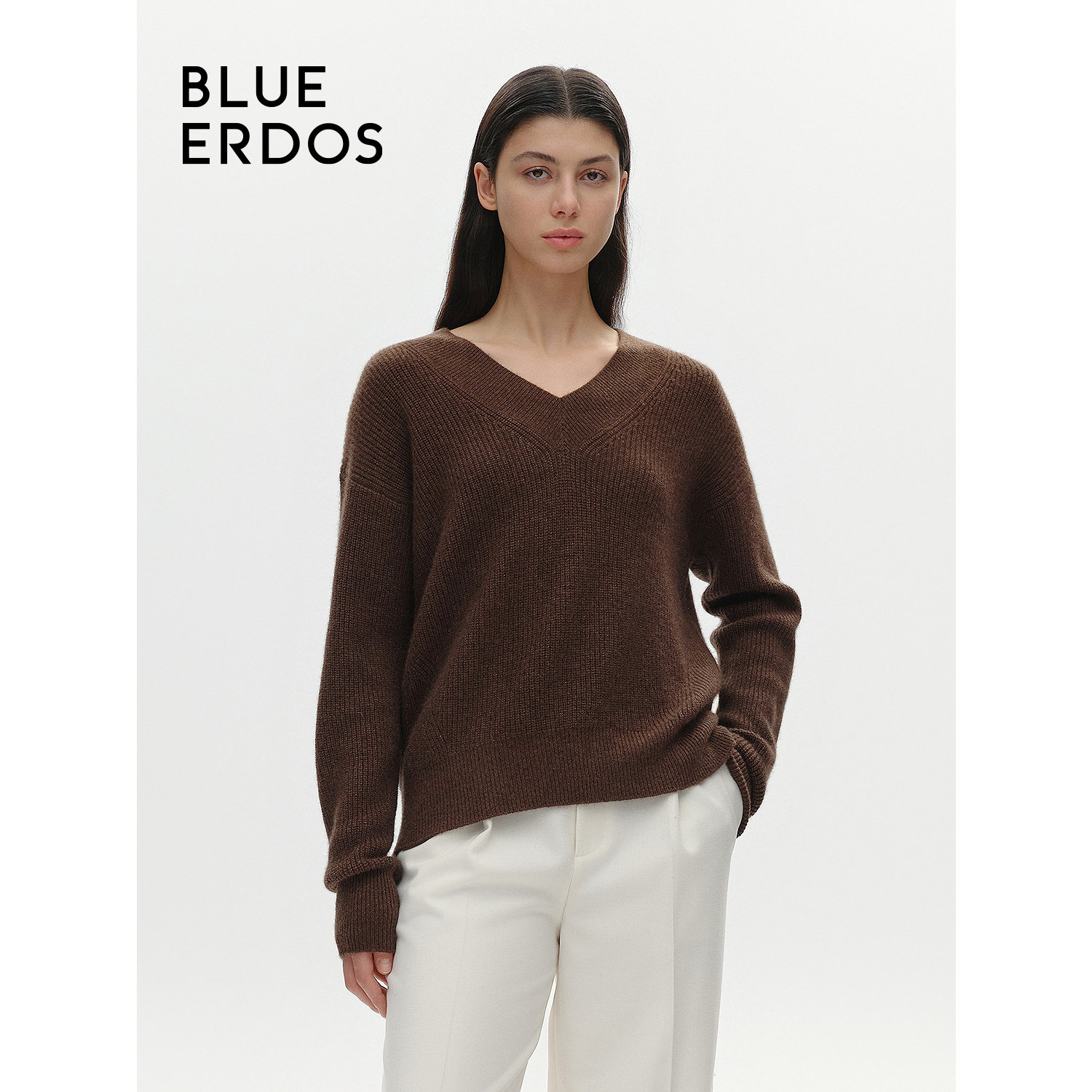 BLUE ERDOS慵懒风牦牛绒混纺V领针织衫女B246A0083