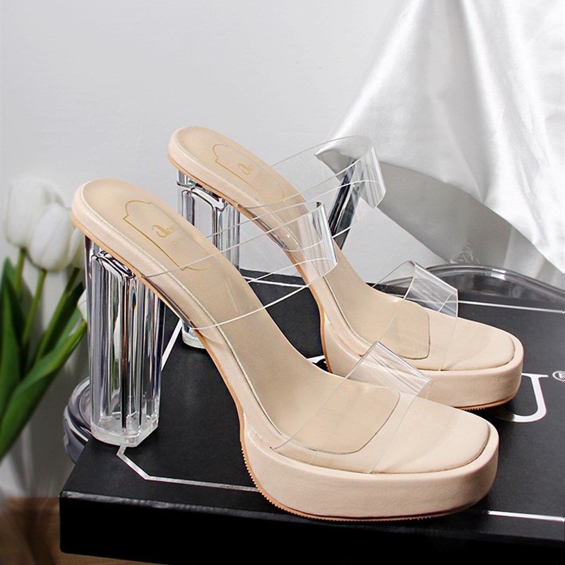 透明凉鞋女高跟2025年夏季新款粗跟防水台百搭一字U带水晶跟凉拖