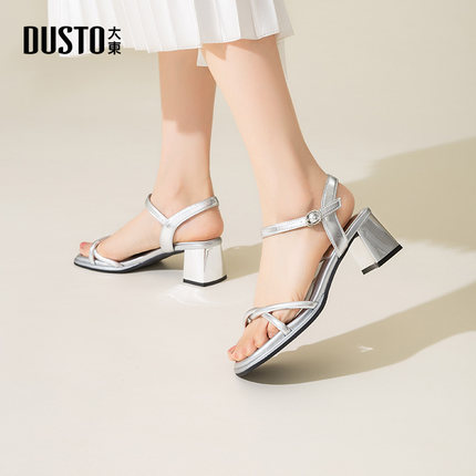 大东凉鞋女鞋2025夏季新款时尚优雅粗跟高跟后空百搭一字带女凉鞋