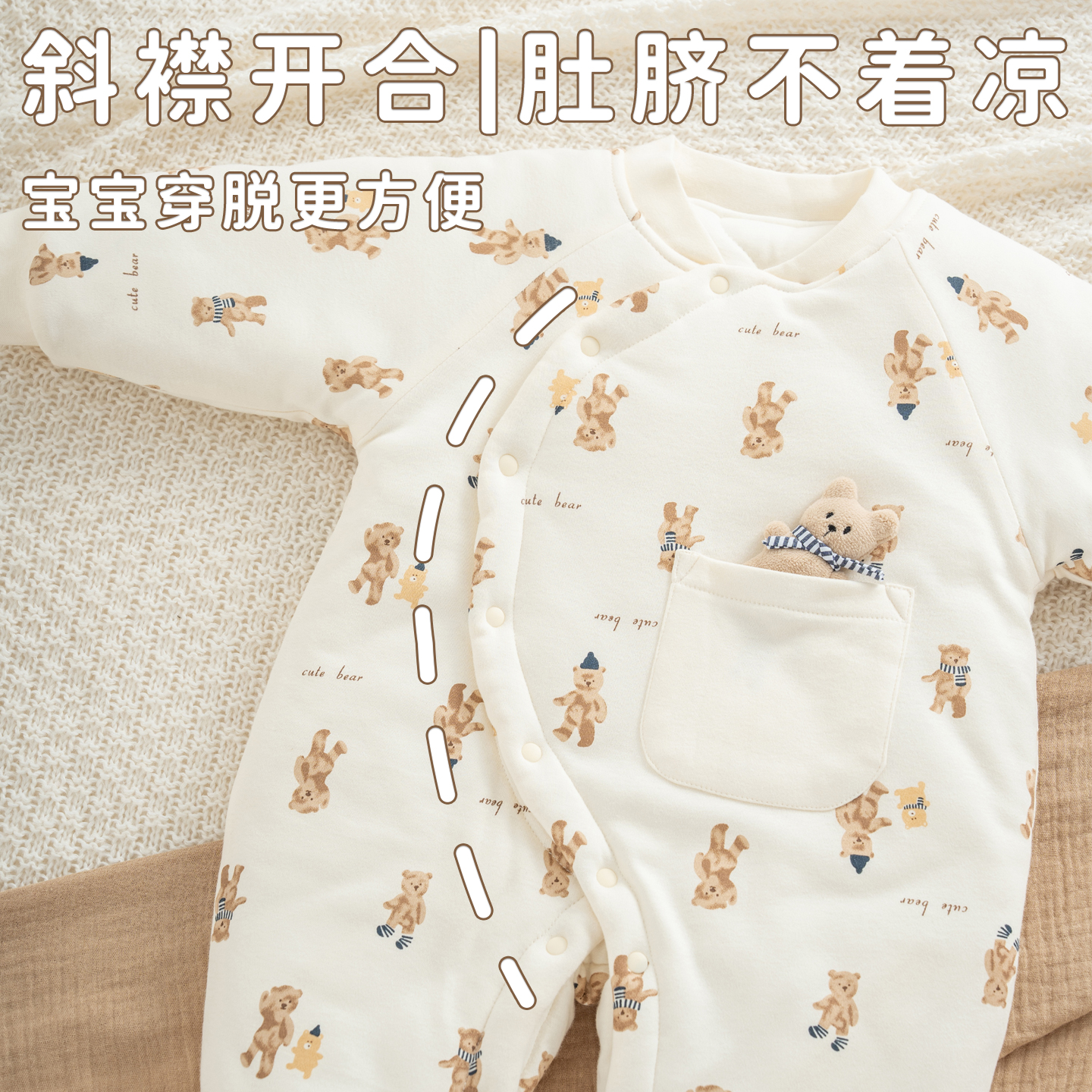 小月龄外出抱抱服新生婴儿冬季婴幼儿夹棉外套加厚男宝宝连体衣