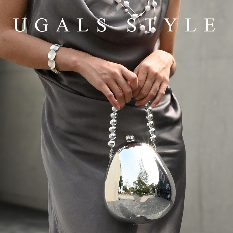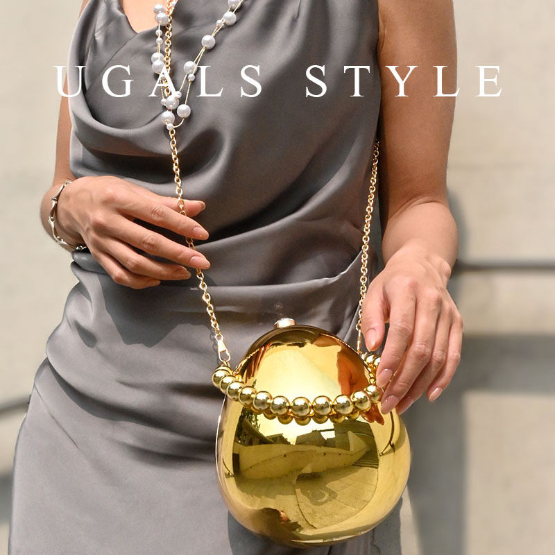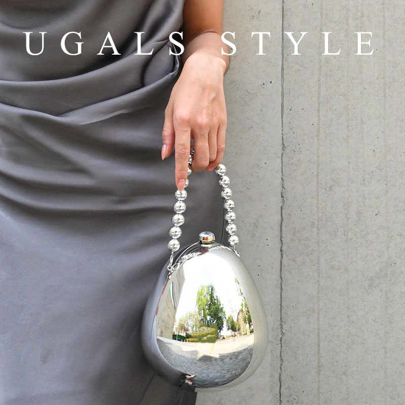 UGALS法式复古亚克力金属感鹅蛋盒子亮面贝壳宴会单肩斜挎手提包