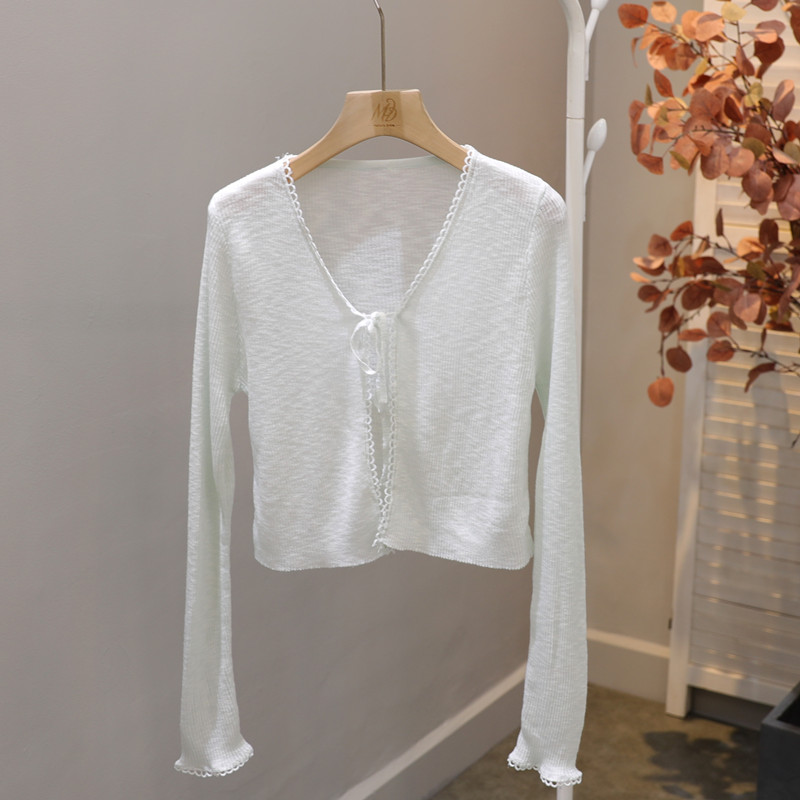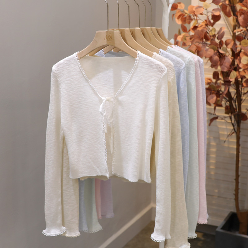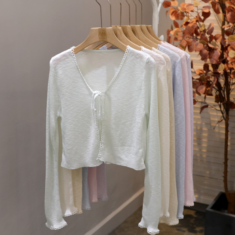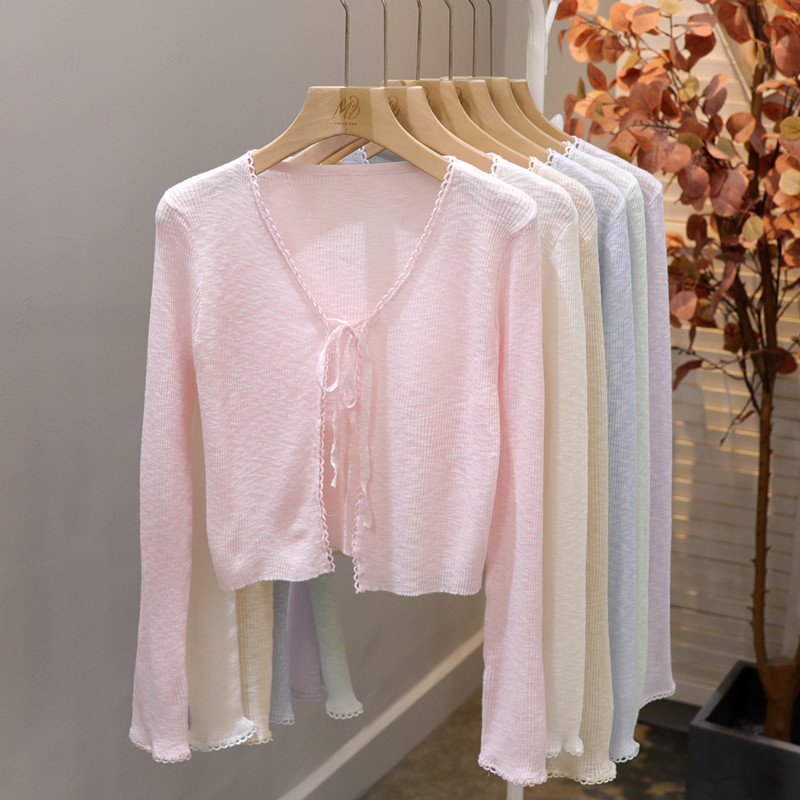 紫色气质短款长袖防晒衫上衣女夏季薄款冰丝开衫外搭绑定披肩上衣