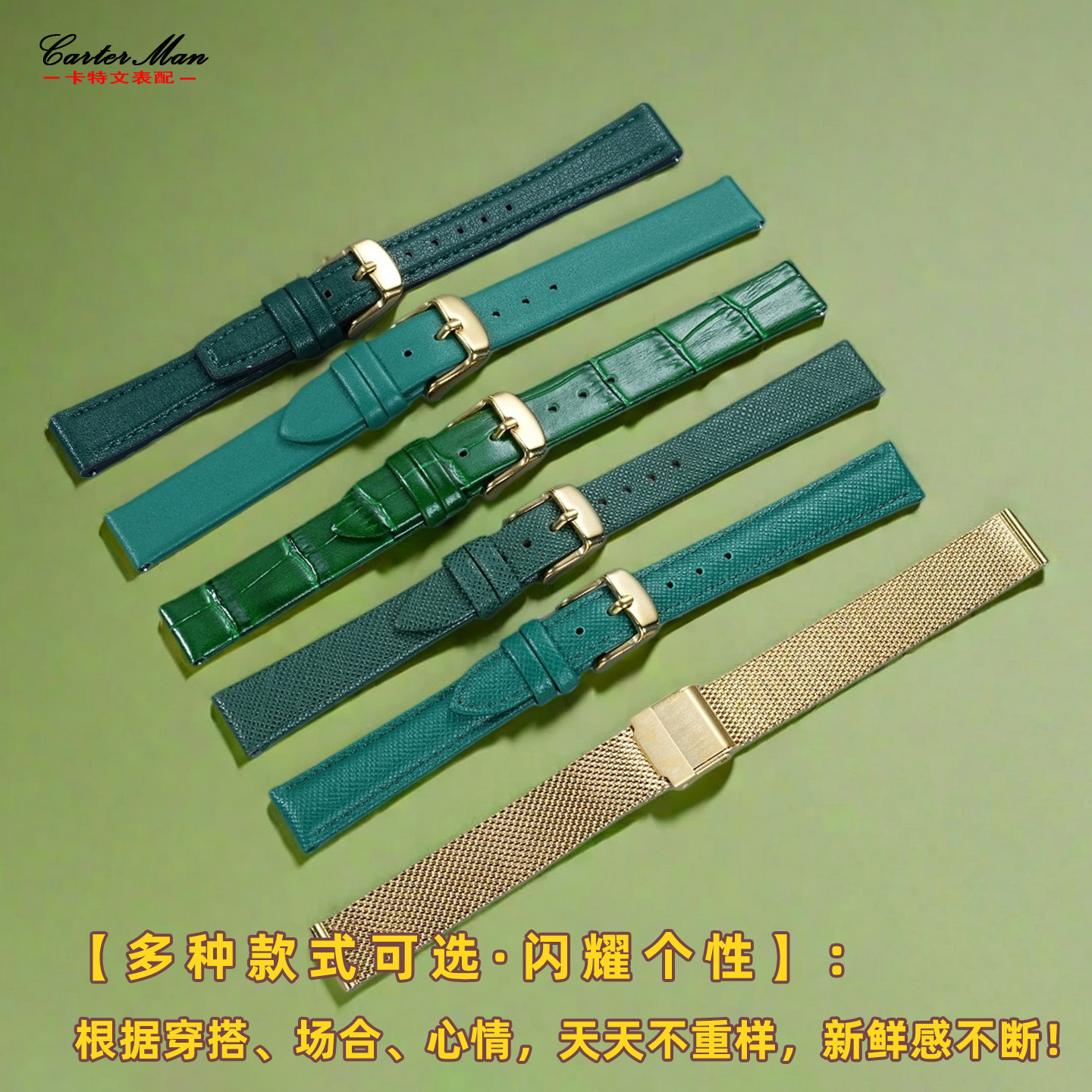 卡特文适配Armani阿玛尼手表时尚皮带绿色小方表AR11399真皮表带