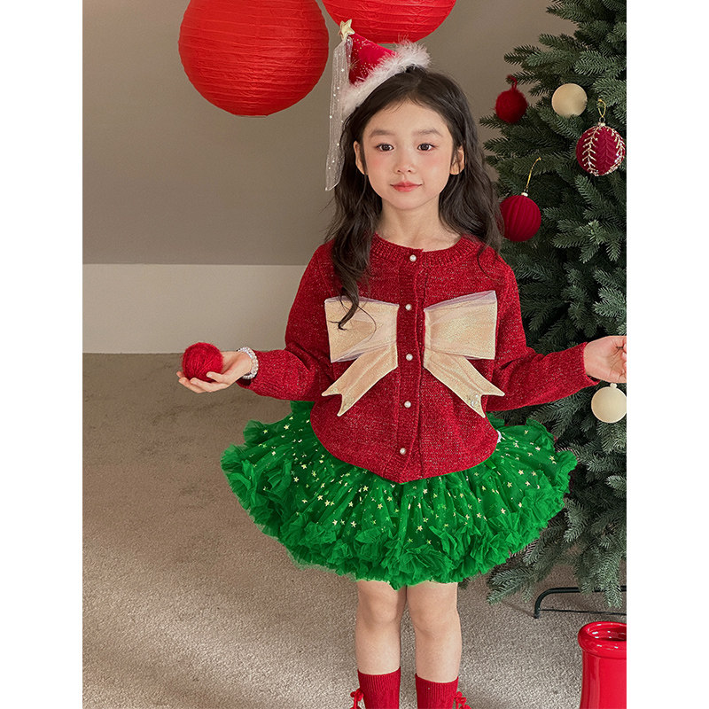 女童tutu裙套装秋冬款2025新款儿童过年拜年服洋气红色毛衣公主裙