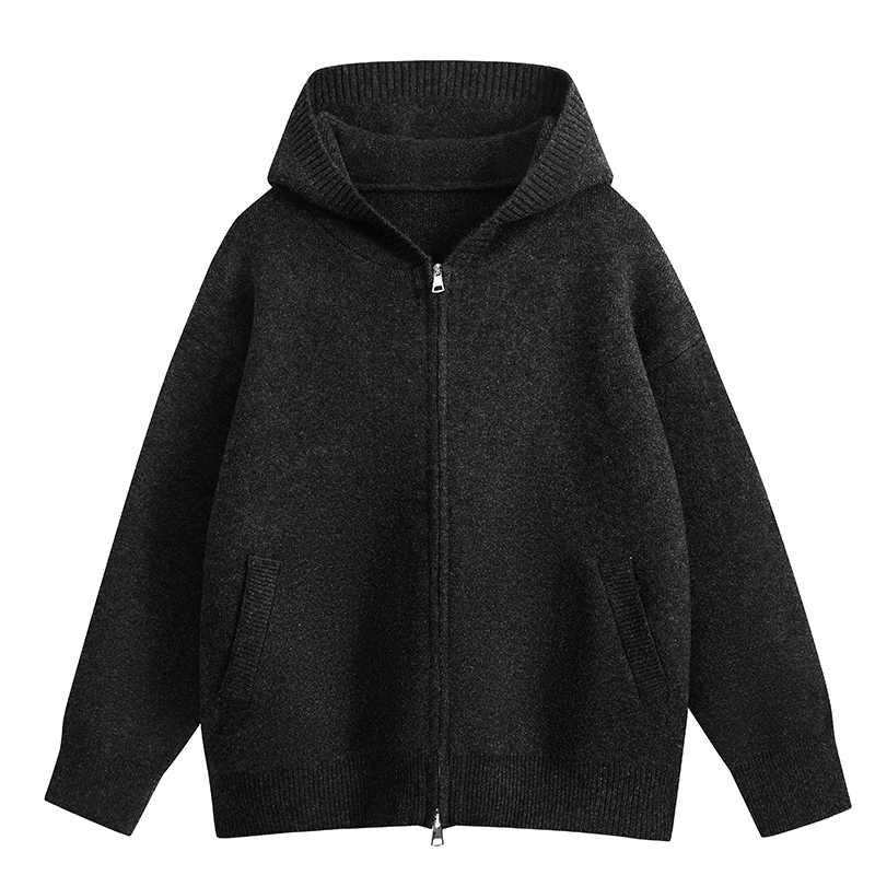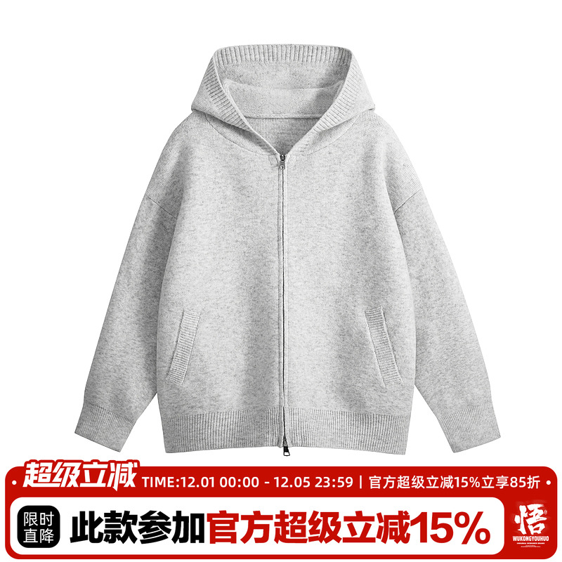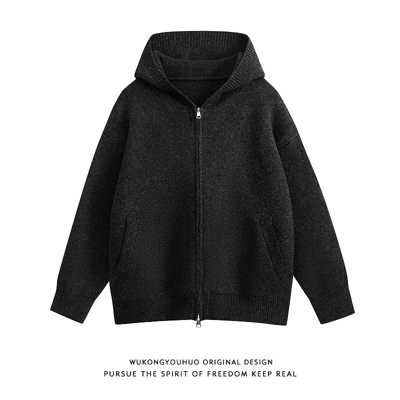 悟空有货美式复古纯色拉链开衫连帽毛衣男女老钱风情侣休闲针织衫